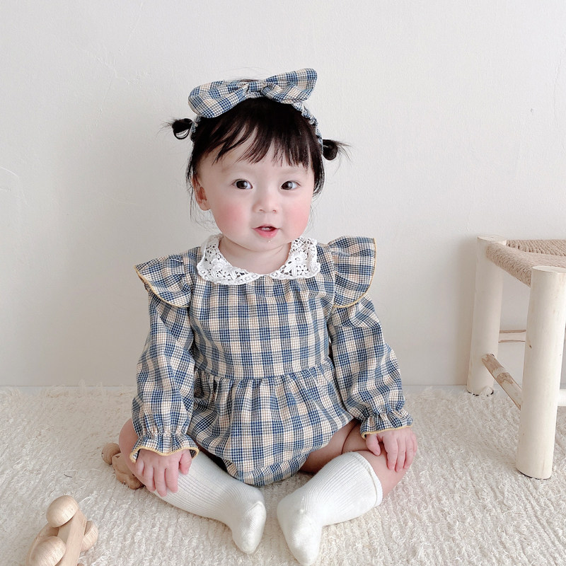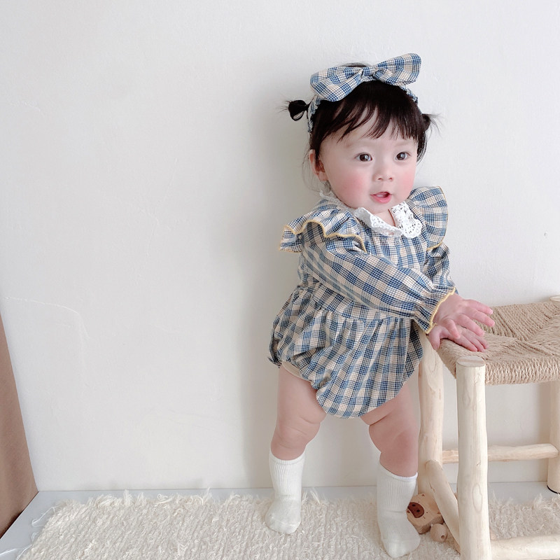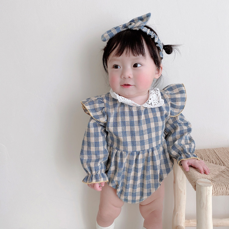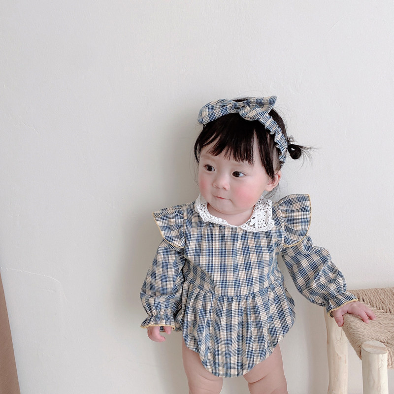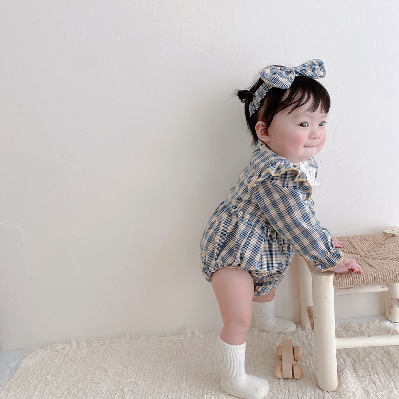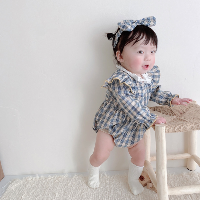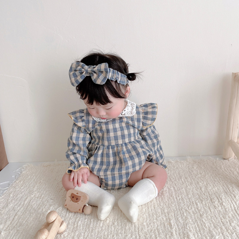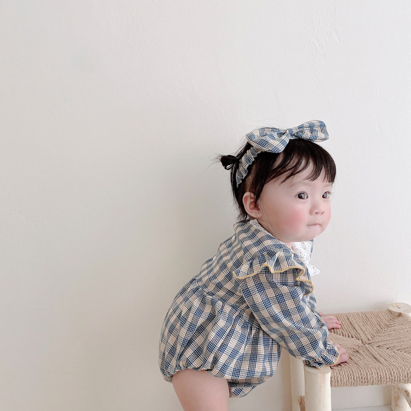 Брендовый весенний осенний детский комбинезон, боди для девочек, повязка на голову, в корейском стиле