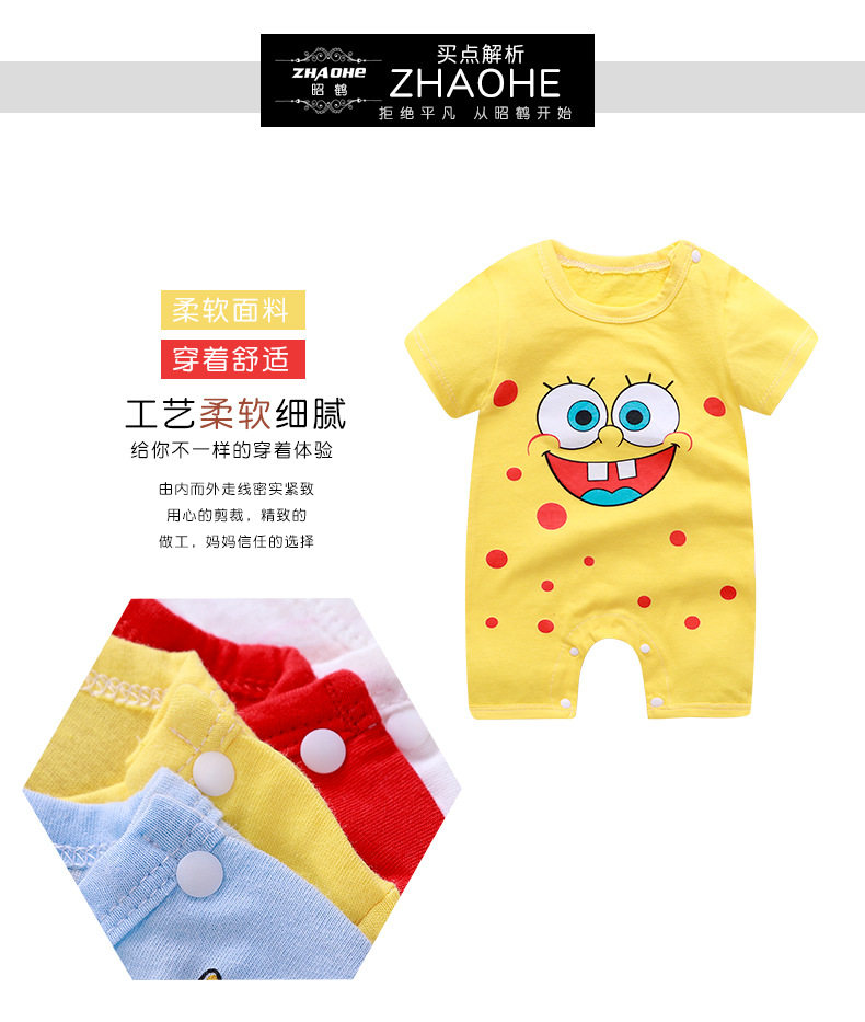 Детское хлопковое летнее боди для новорожденных, короткий рукав, детская одежда
