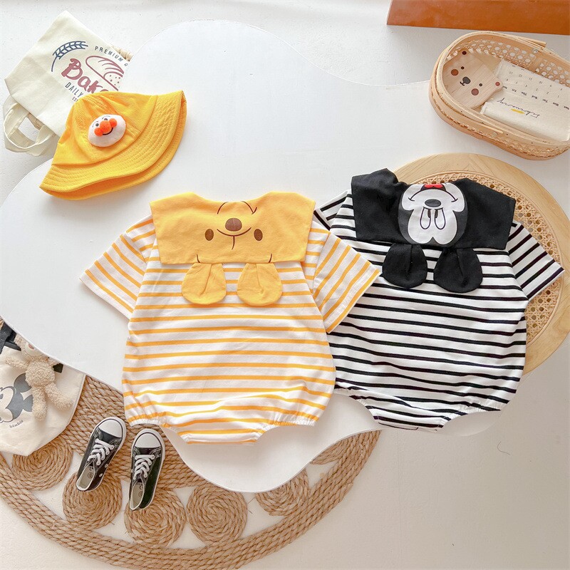 Летнее тонкое мультяшное милое боди для раннего возраста для новорожденных, популярно в интернете, короткий рукав