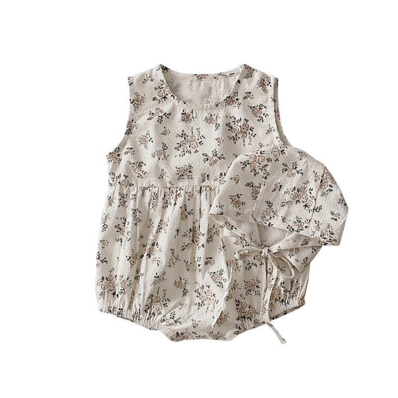 Брендовая детская летняя одежда, комбинезон, жилет, детское свежее боди без рукавов, в западном стиле, цветочный принт