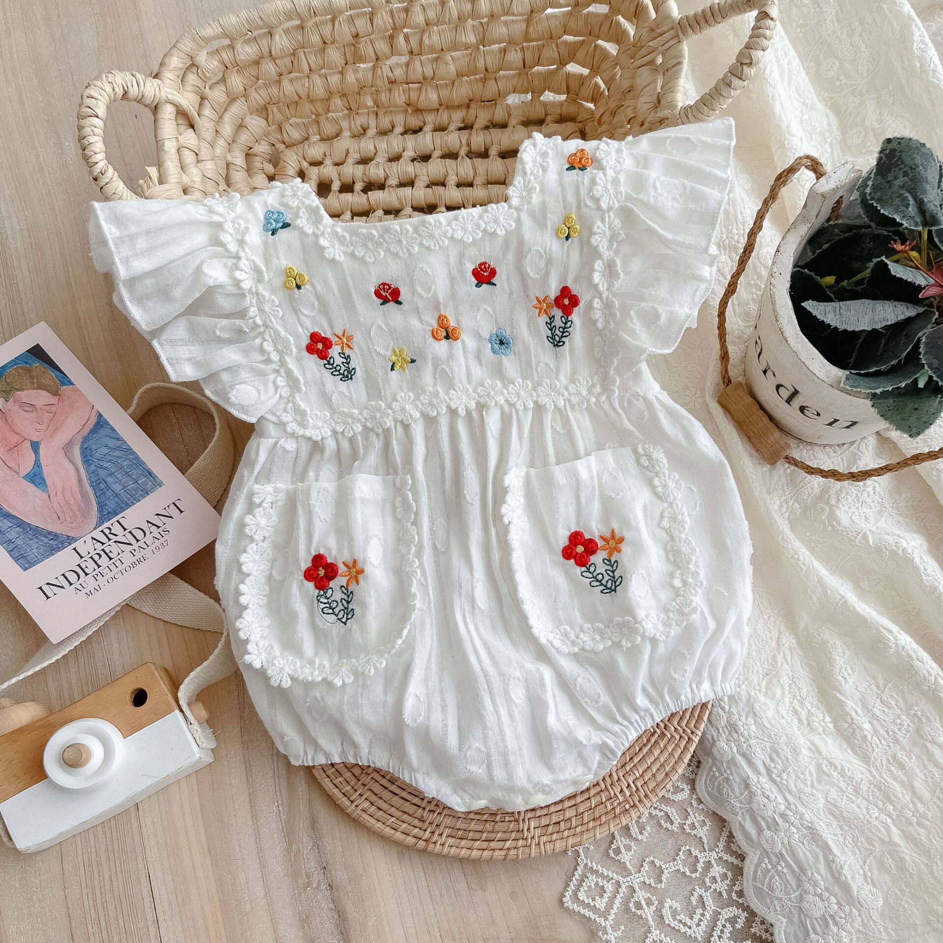 Детская летняя одежда для новорожденных для девочек, тонкое боди, в корейском стиле, в западном стиле