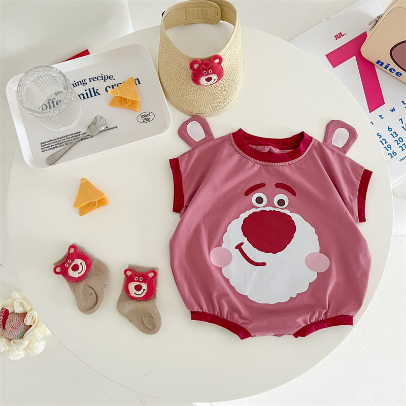Брендовое боди для младенца, детская мультяшная клубника, Южная Корея, с медвежатами, короткий рукав