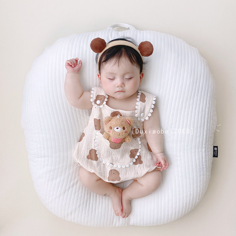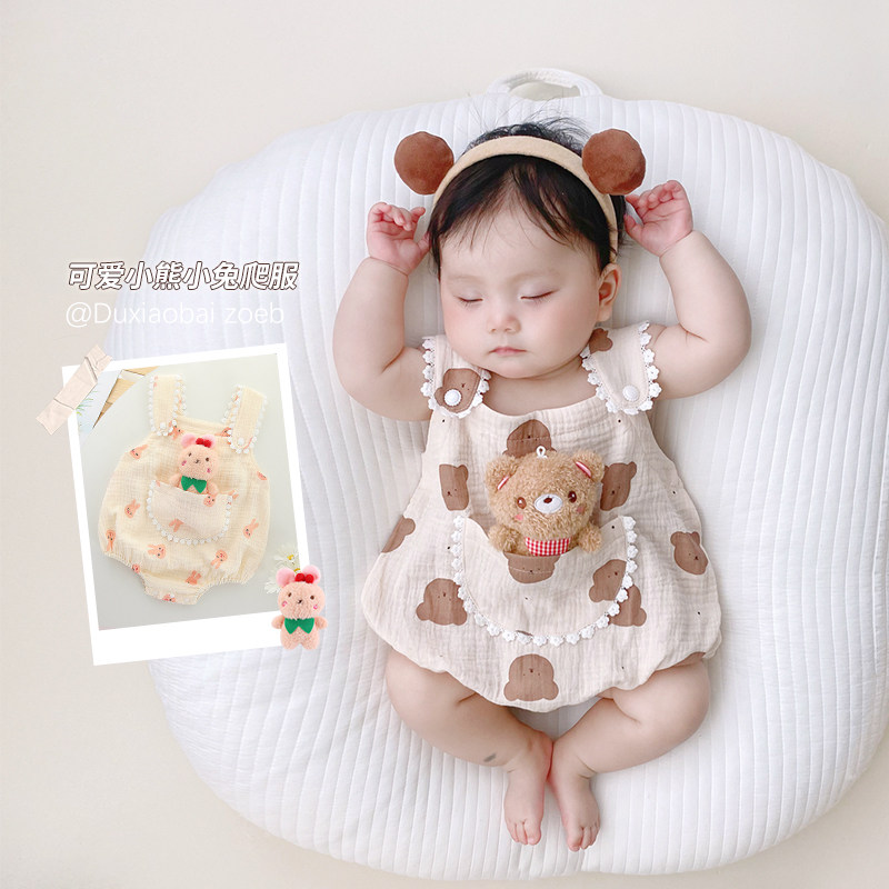 Детская летняя одежда, боди для раннего возраста, тонкий хлопковый жилет, с медвежатами, эффект подтяжки