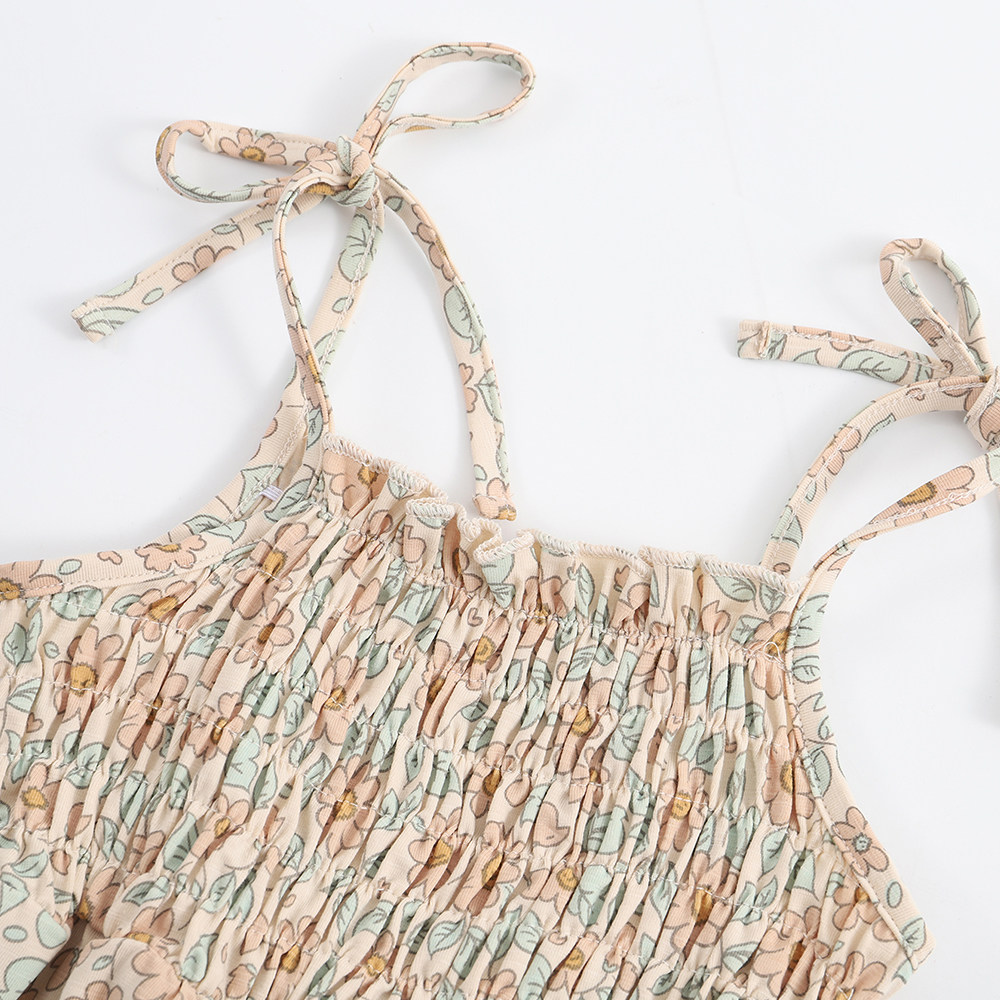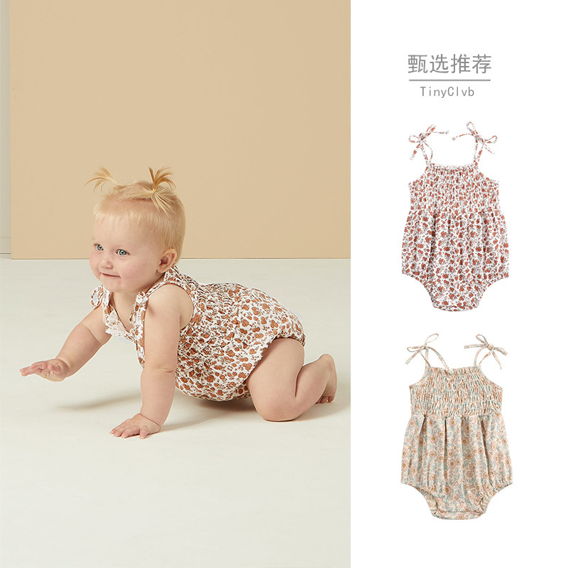 Летнее детское хлопковое брендовое боди без рукавов для принцессы для выхода на улицу, эффект подтяжки, цветочный принт