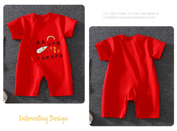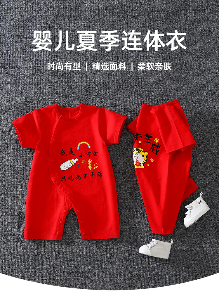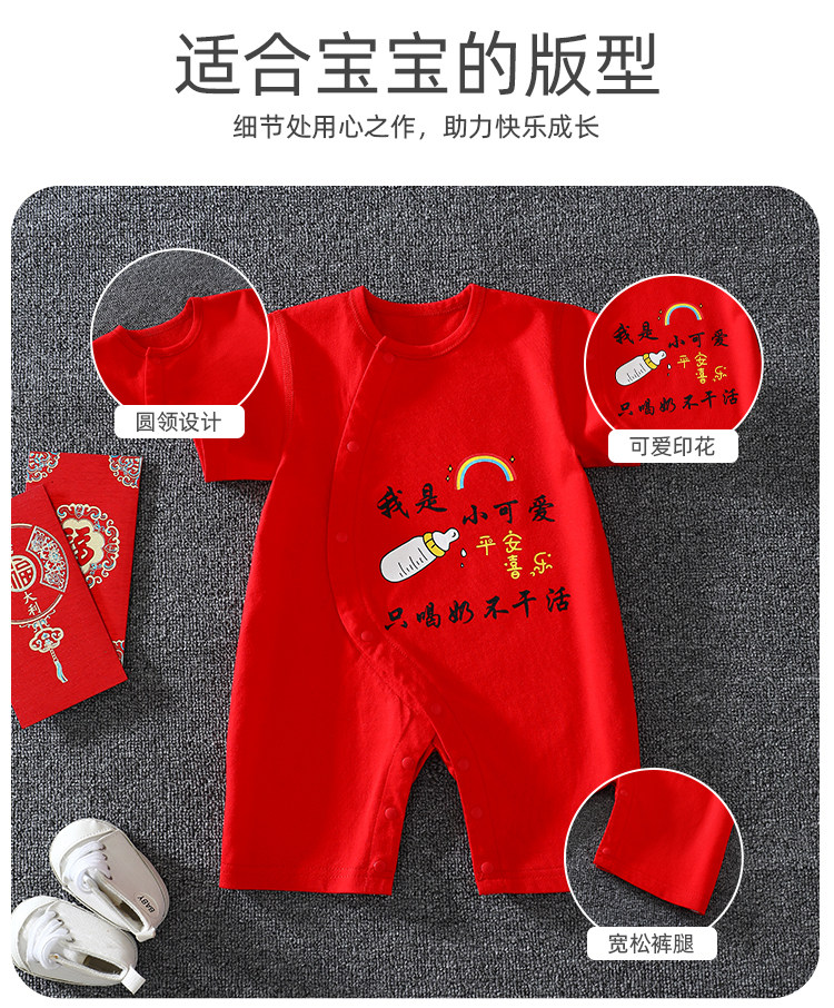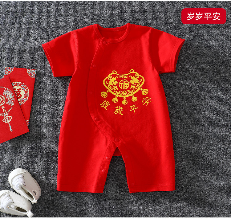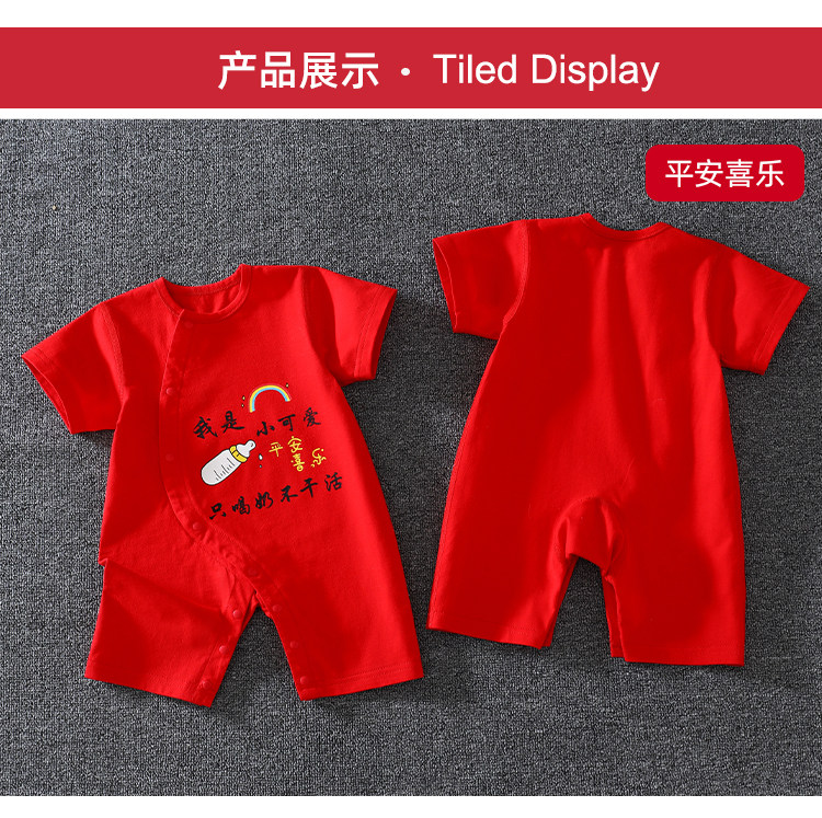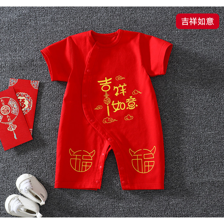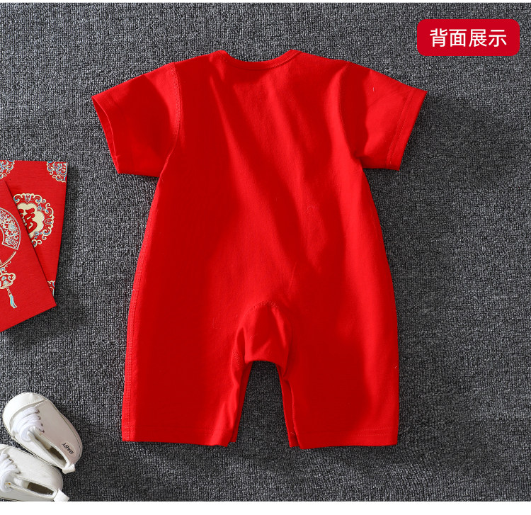 Детское красное хлопковое боди для новорожденных, платье, короткий рукав, китайский стиль