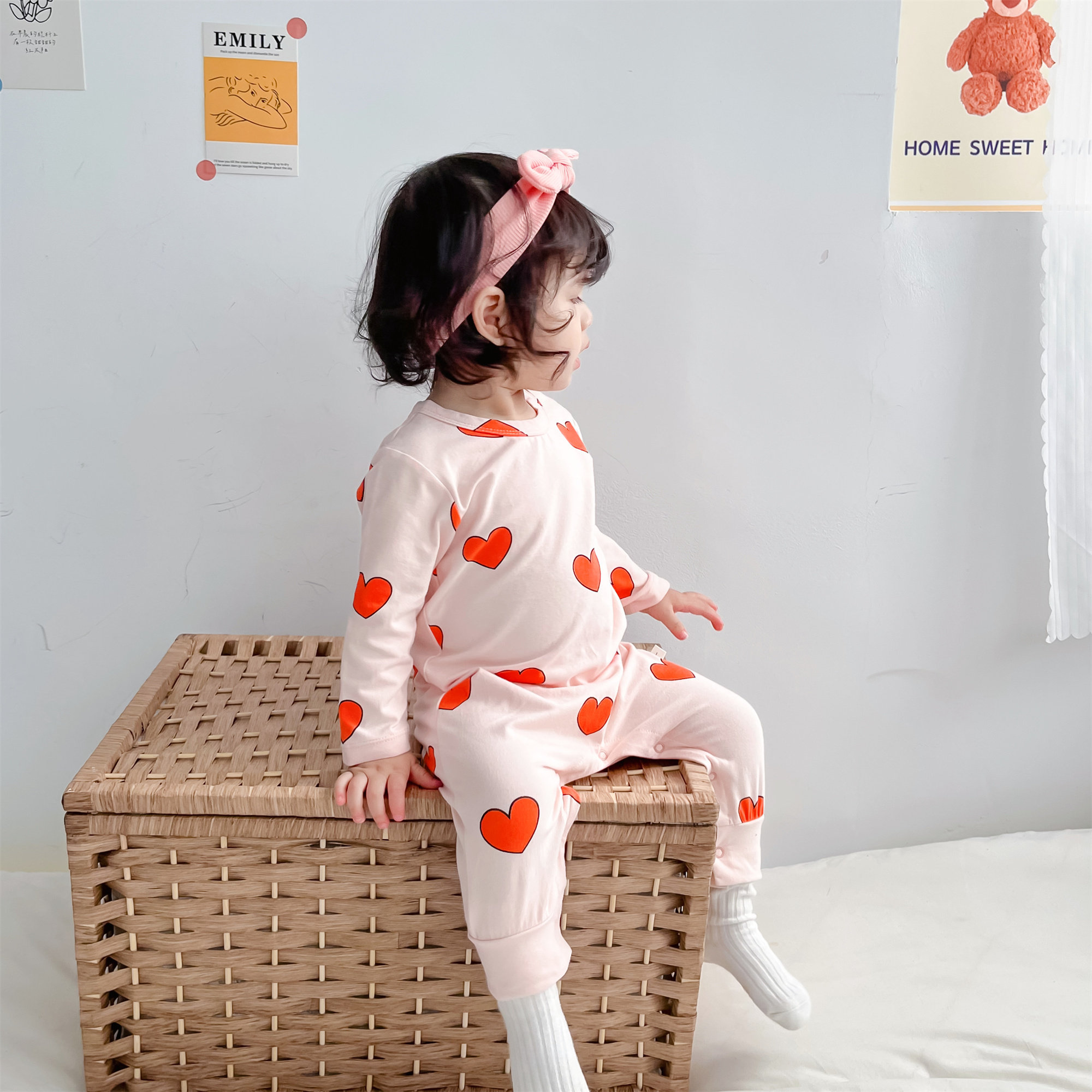 Брендовый осенний милый детский комбинезон, осеннее хлопковое боди для девочек, в западном стиле