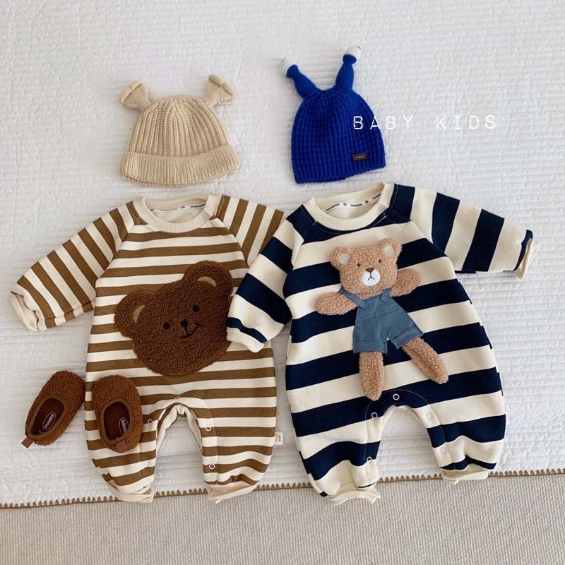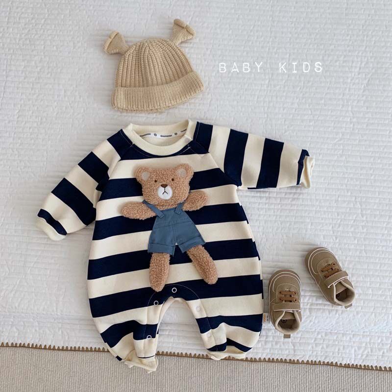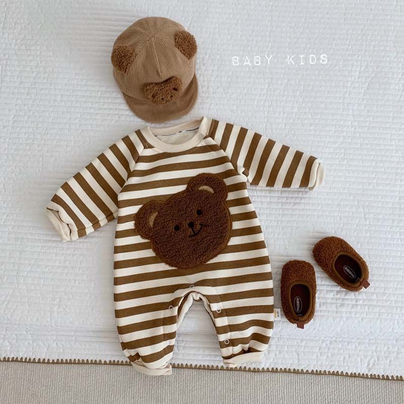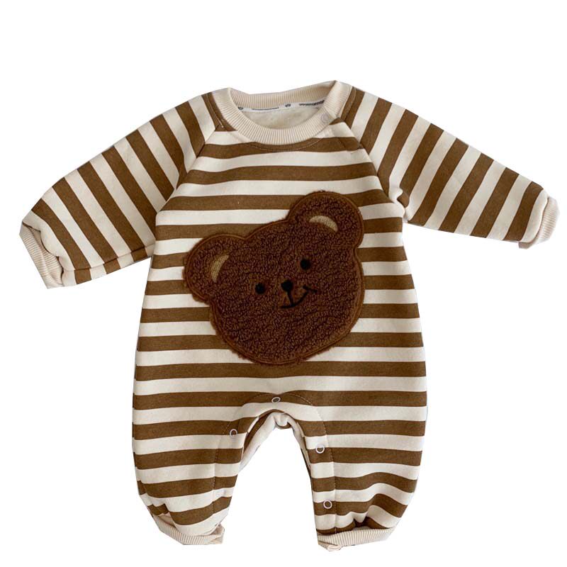 Брендовое демисезонное боди для младенца подходит для мужчин и женщин для девочек, бархатная кукла, в корейском стиле, увеличенная толщина, с медвежатами