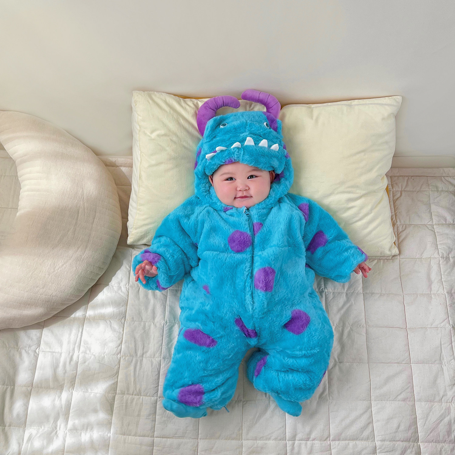 Зимний детский милый комбинезон, монстр, утепленная детская демисезонная пижама