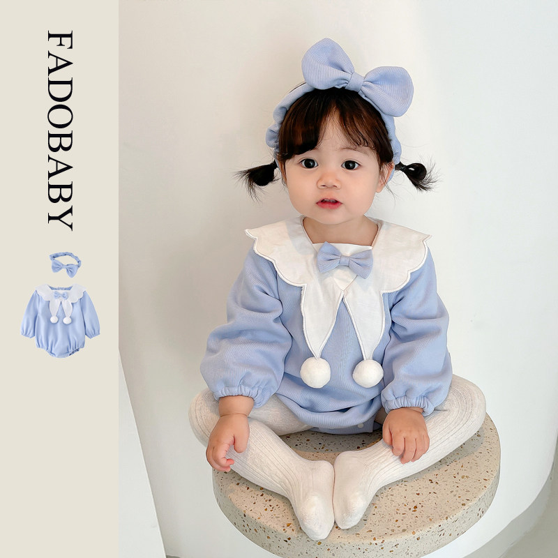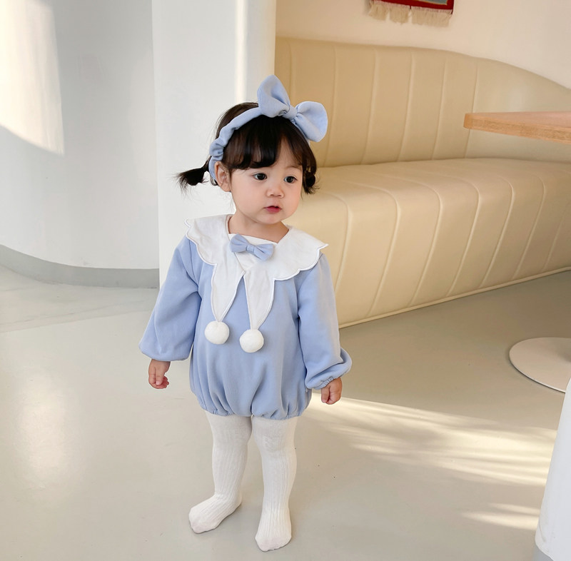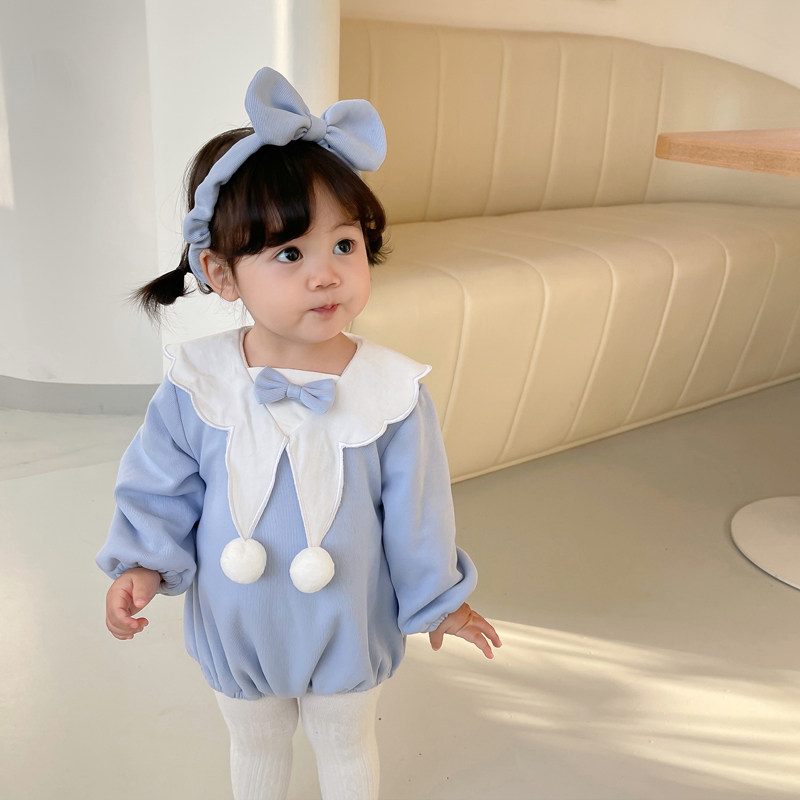 Детский комбинезон, осеннее боди с бантиком для девочек, повязка на голову