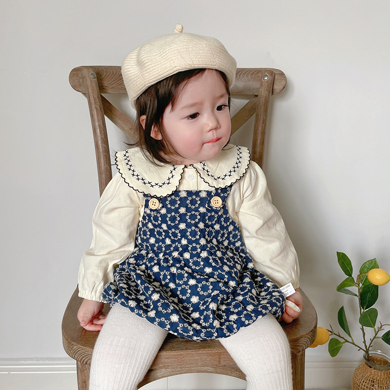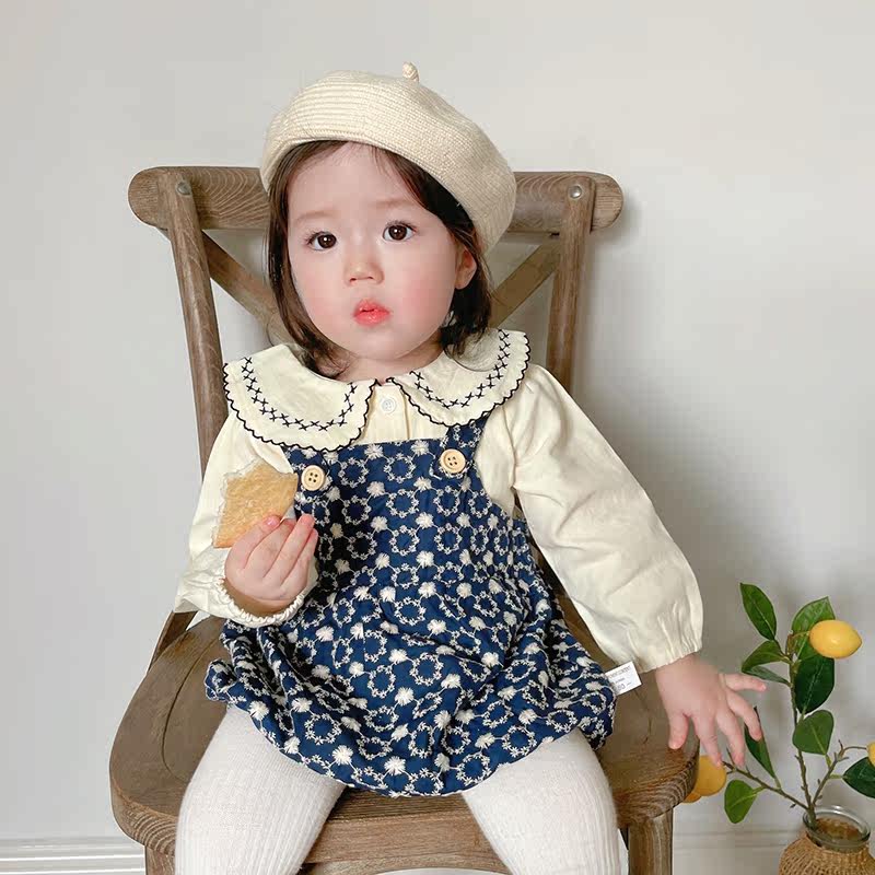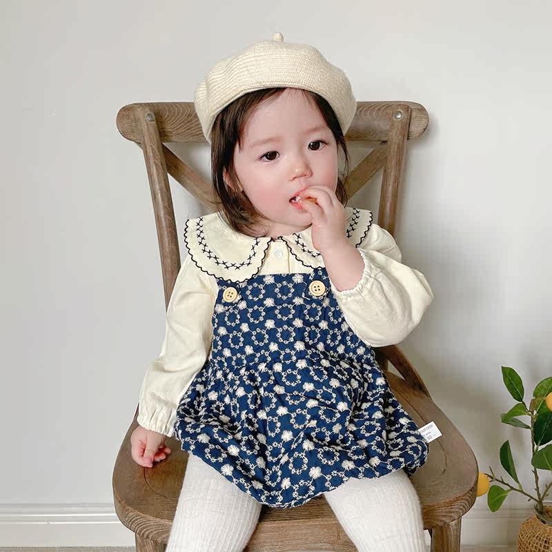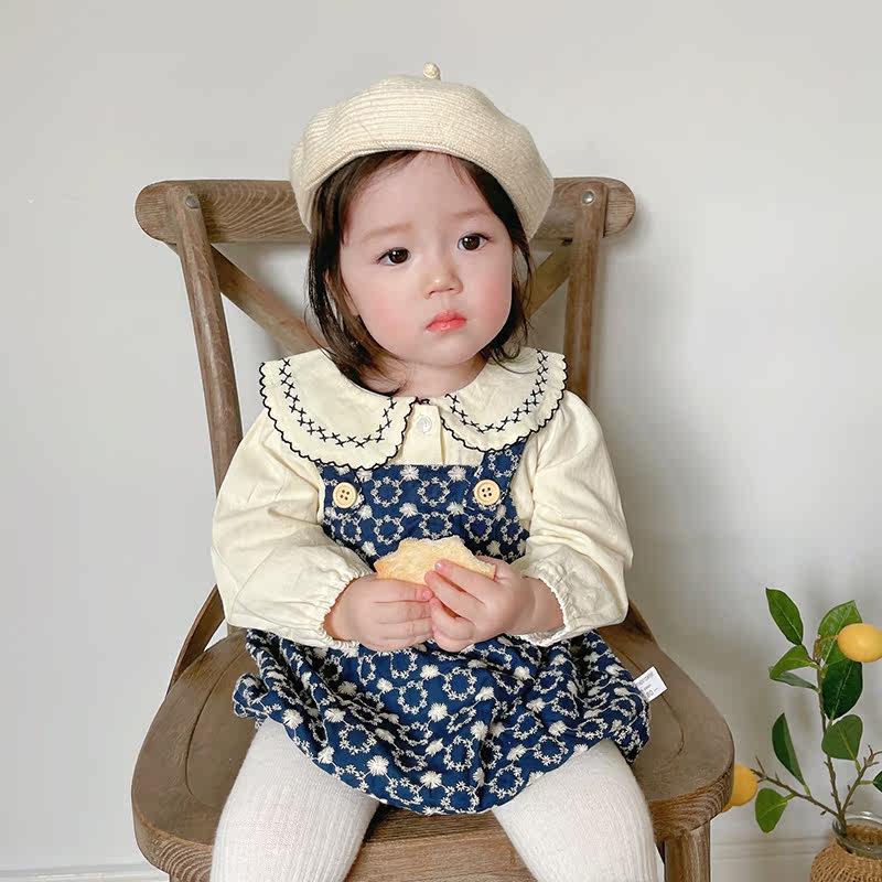 Брендовая детская рубашка, подтяжки, осенний милый комплект для девочек, осенняя, в западном стиле