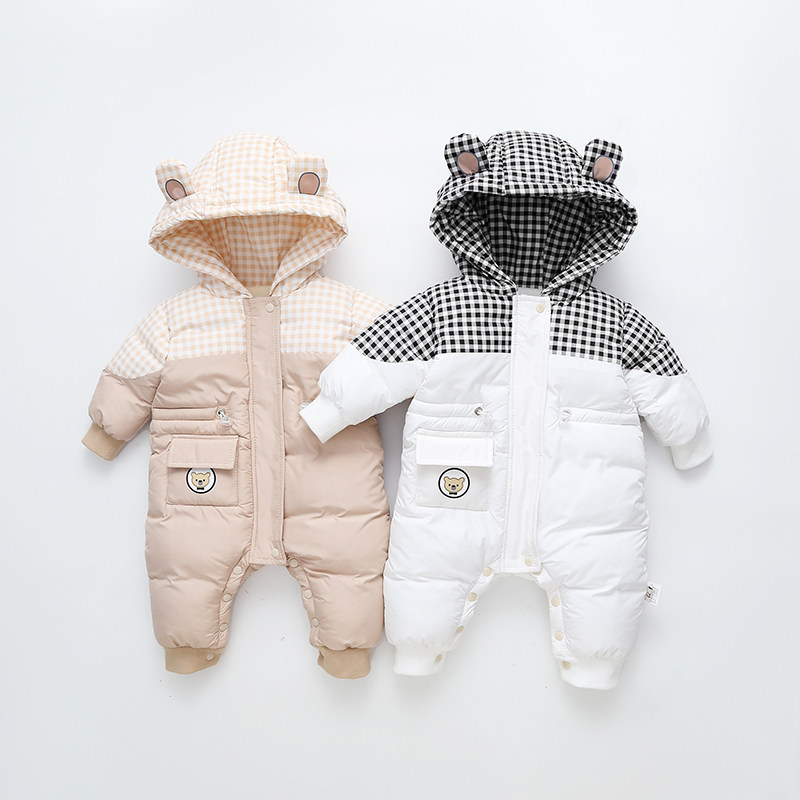 Зимний детский пуховик для новорожденных с пухом, утепленный комплект для выхода на улицу