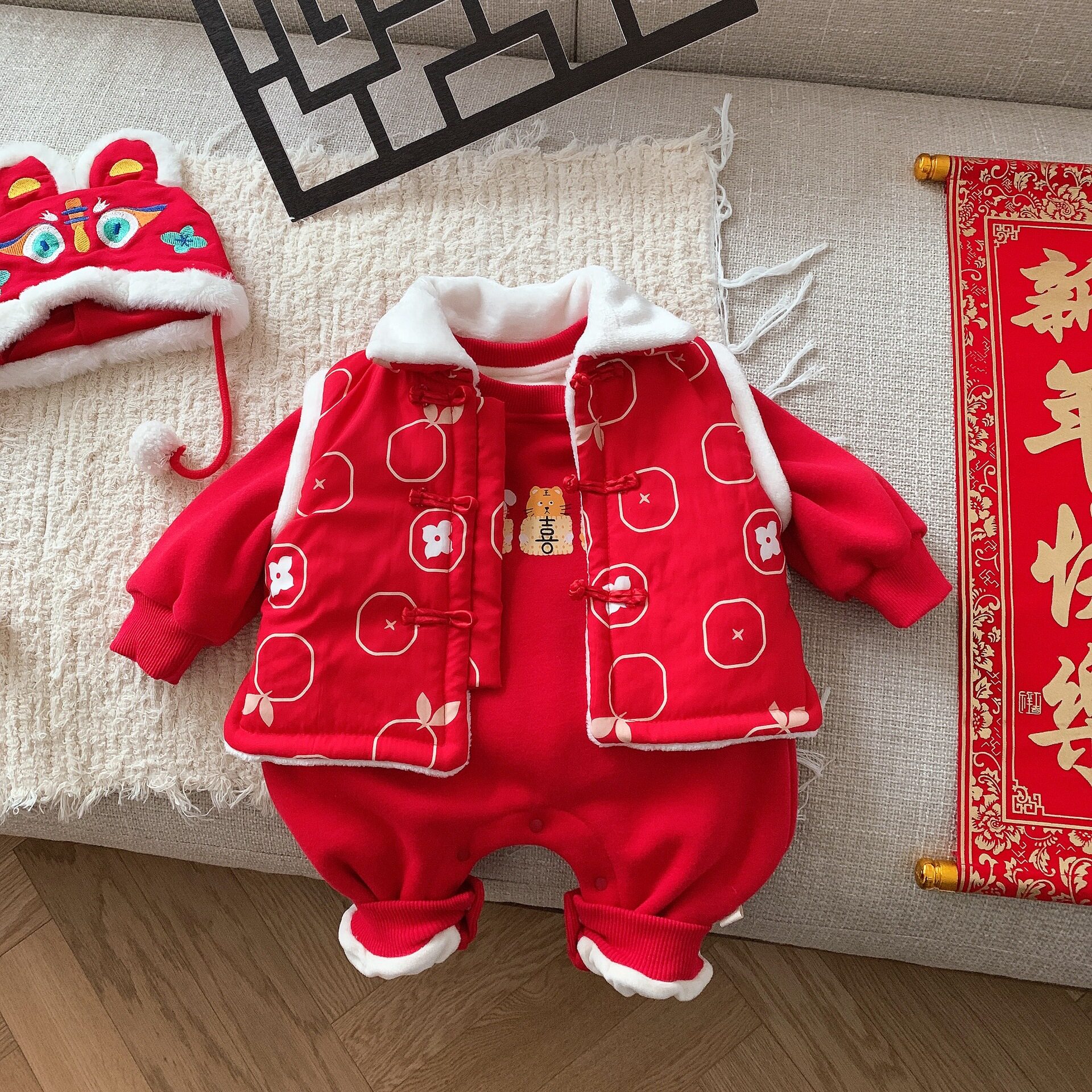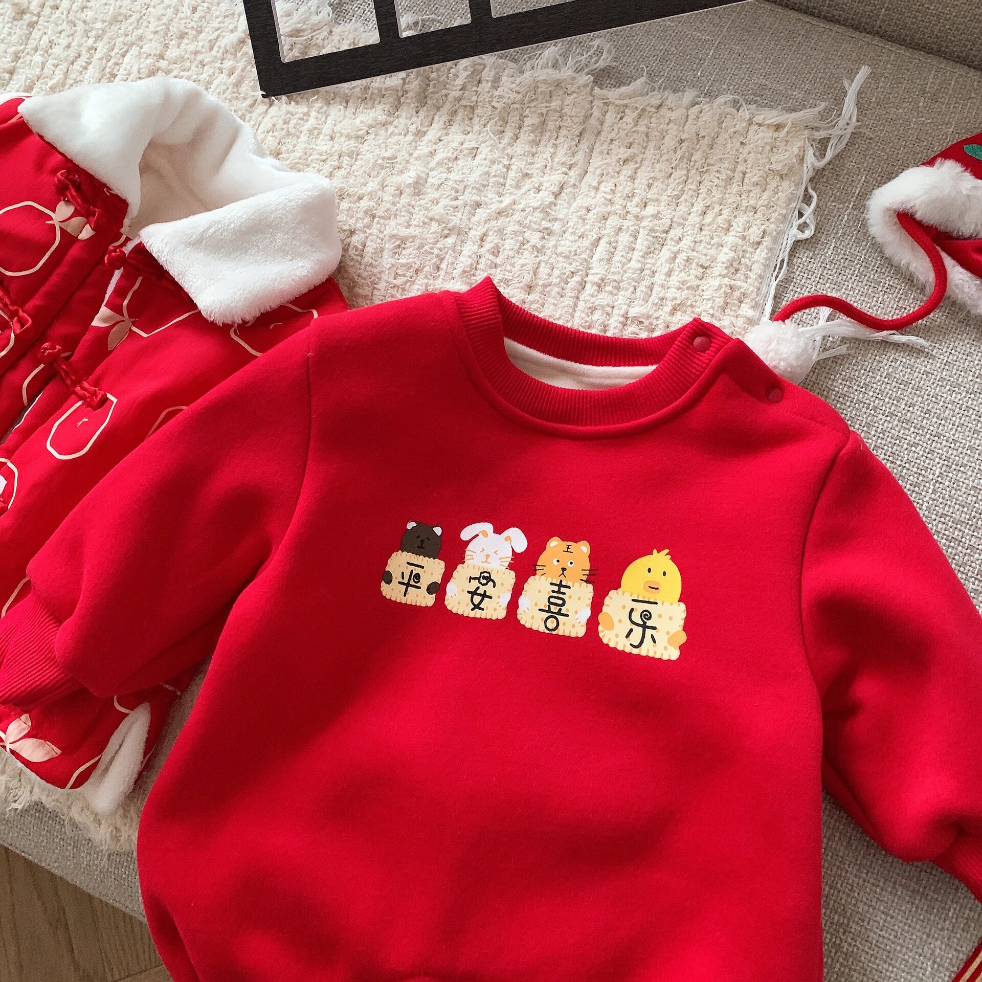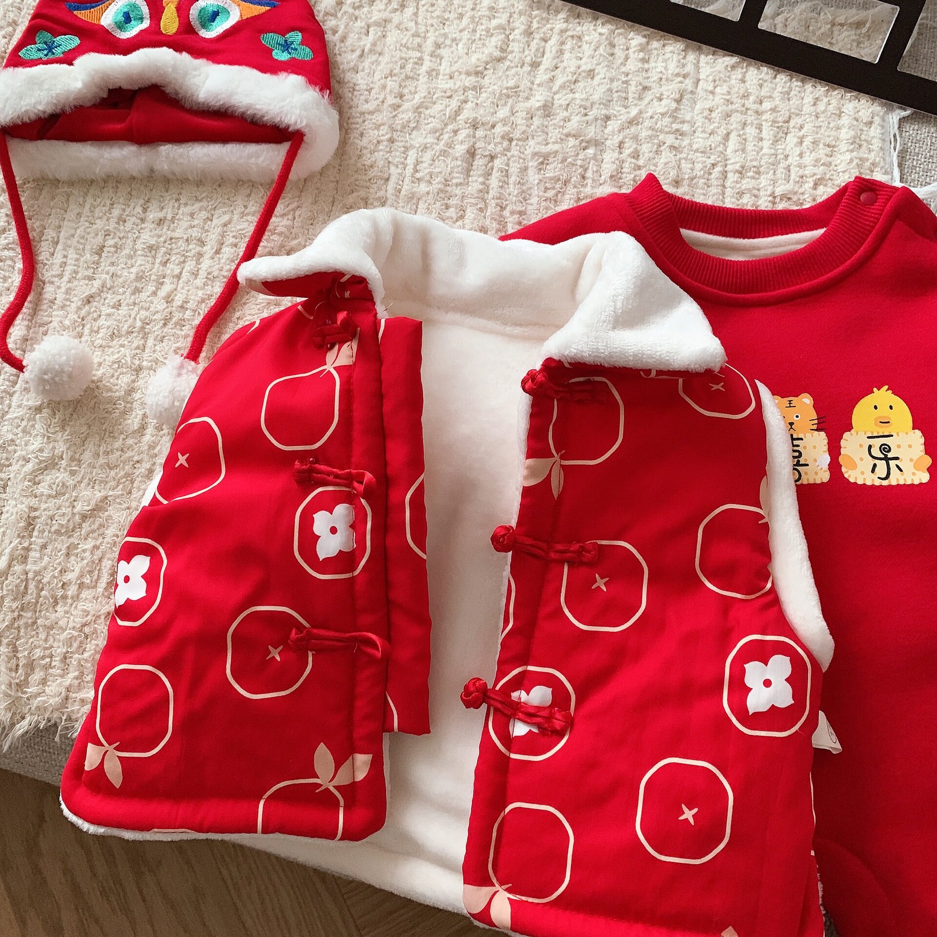 Детский зимний утепленный праздничнный защитный амулет, удерживающий тепло комплект