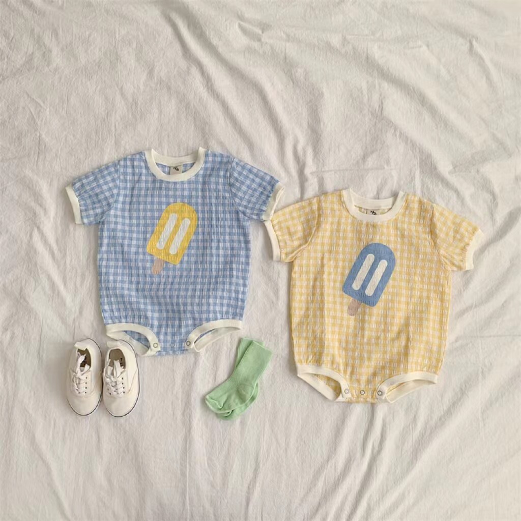 Летнее милое боди подходит для мужчин и женщин для девочек, в корейском стиле, короткий рукав