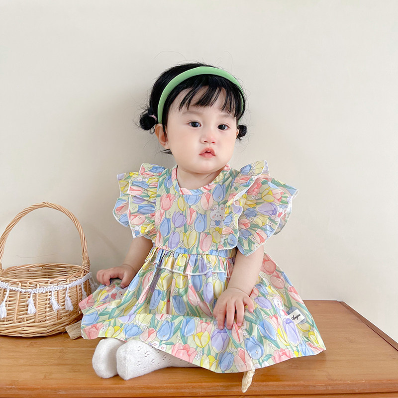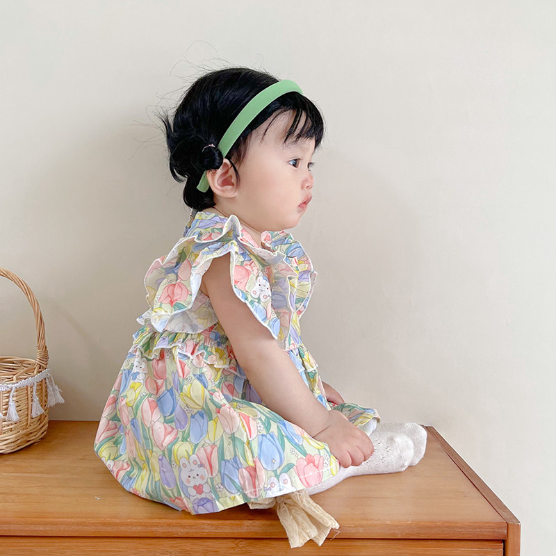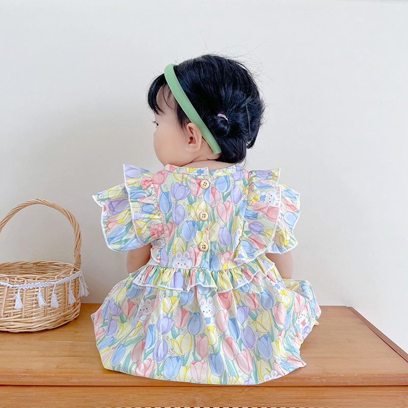 Детская летняя одежда, милое боди для принцессы, летняя тонкая юбка на девочку, коллекция 2023, в западном стиле, цветочный принт