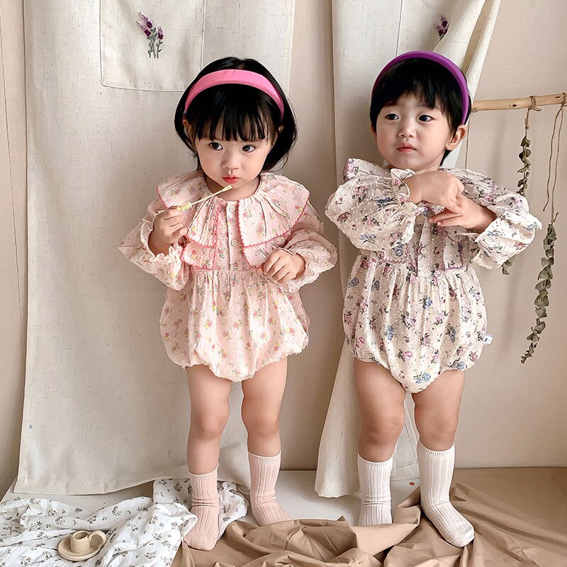 Детский комбинезон, демисезонное боди для девочек для принцессы, тонкий лонгслив для новорожденных, цветочный принт