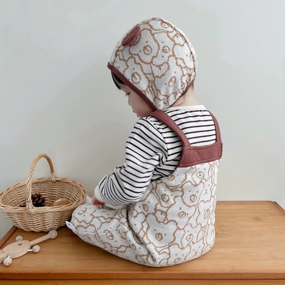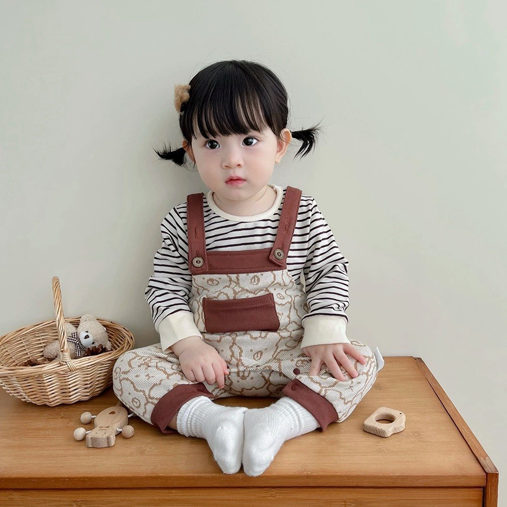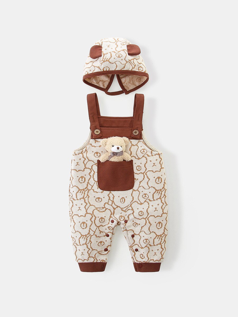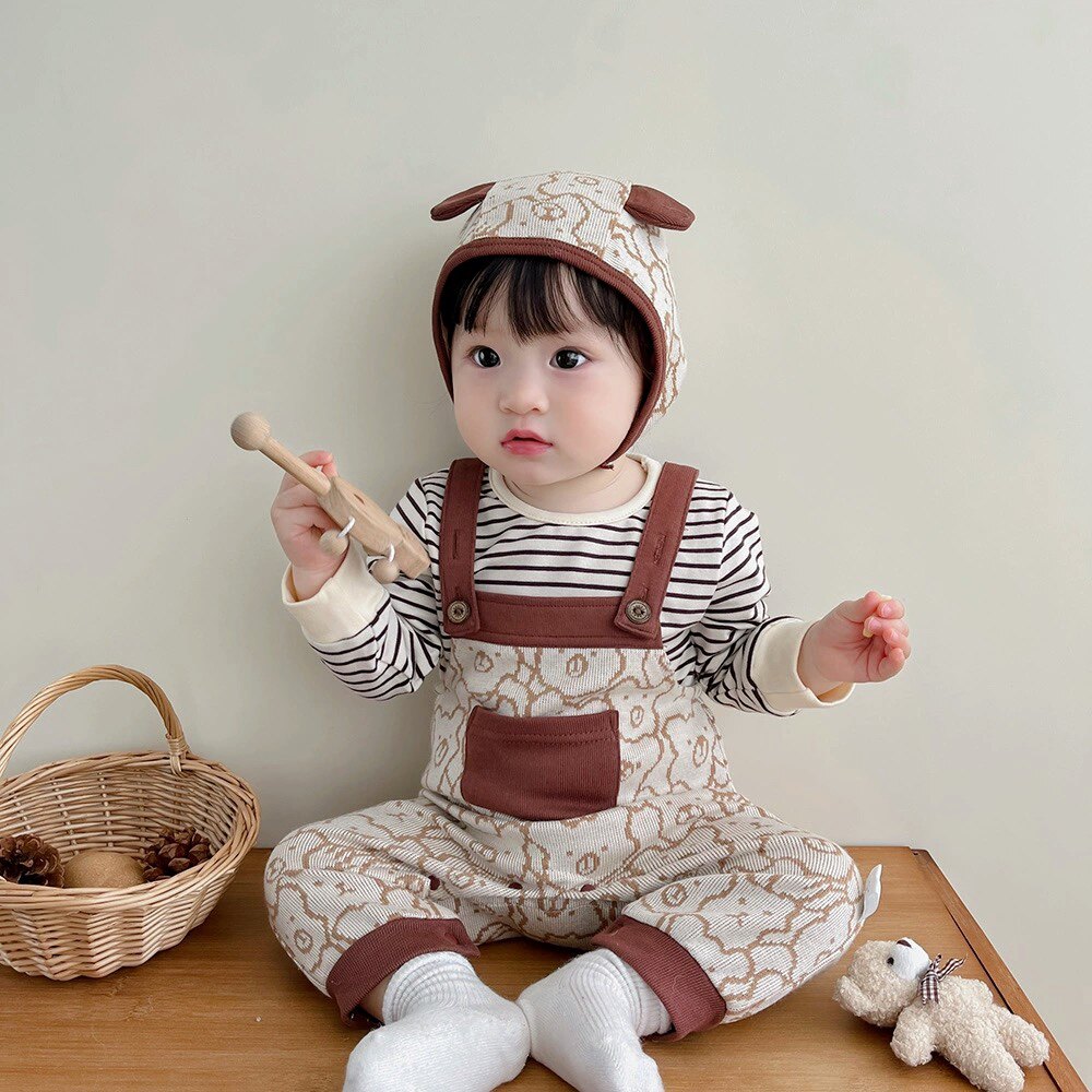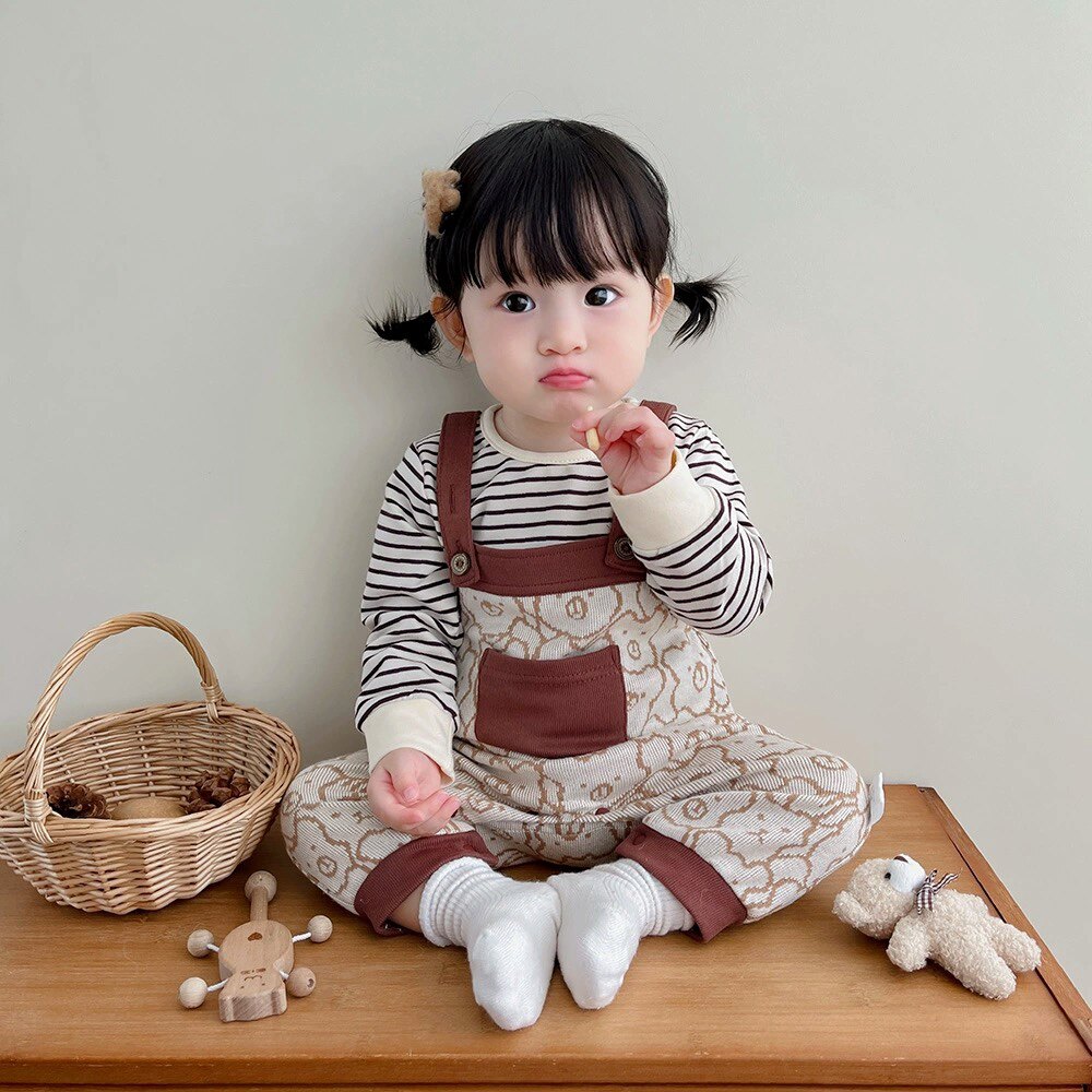 Брендовый слинг, комбинезон, комплект подходит для мужчин и женщин для девочек, детские штаны для выхода на улицу, в корейском стиле, с медвежатами, осенний, в западном стиле