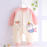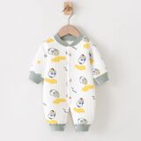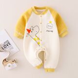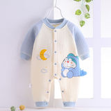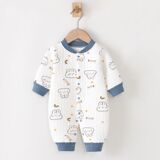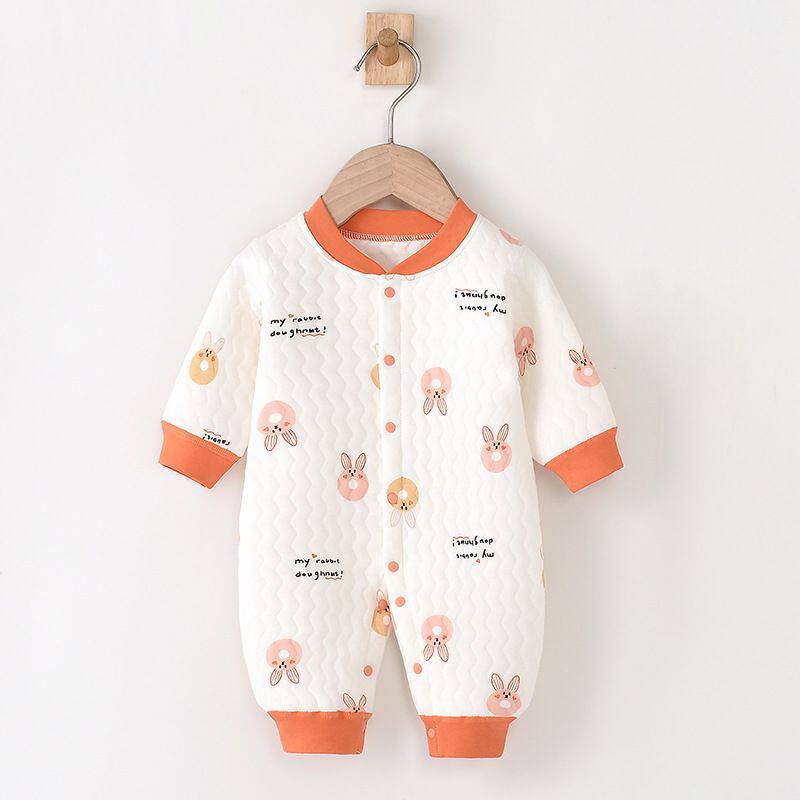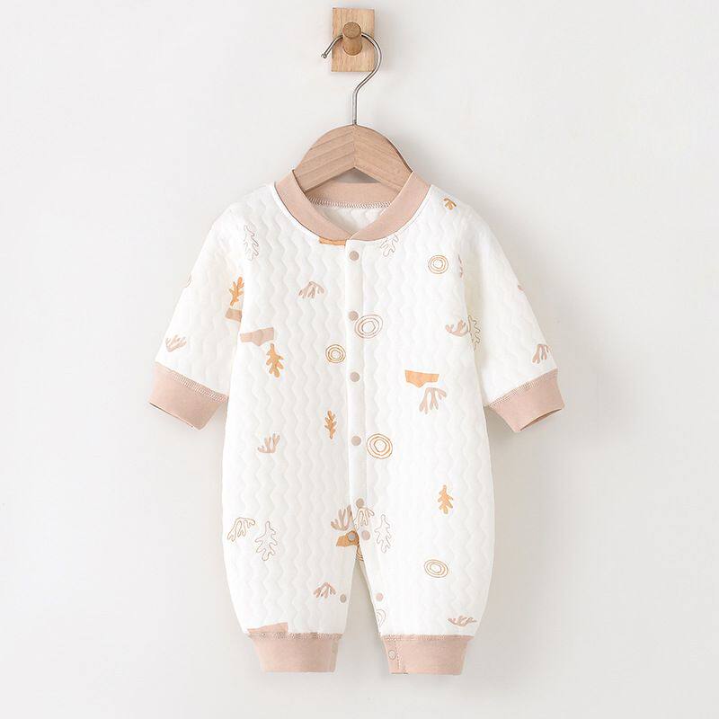 Полностью хлопковые осенние и зимние детские комбинезоны, теплые стеганые комбинезоны для новорожденных мальчиков и девочек в возрасте от 3 до 12 месяцев средней толщины.