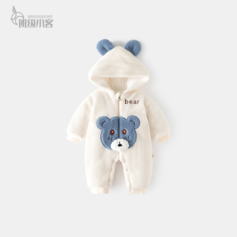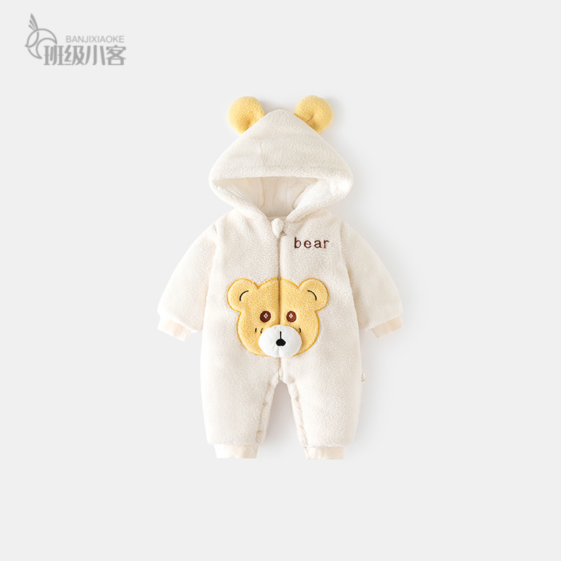 Детское утепленное демисезонное зимнее боди для выхода на улицу, увеличенная толщина, с медвежатами