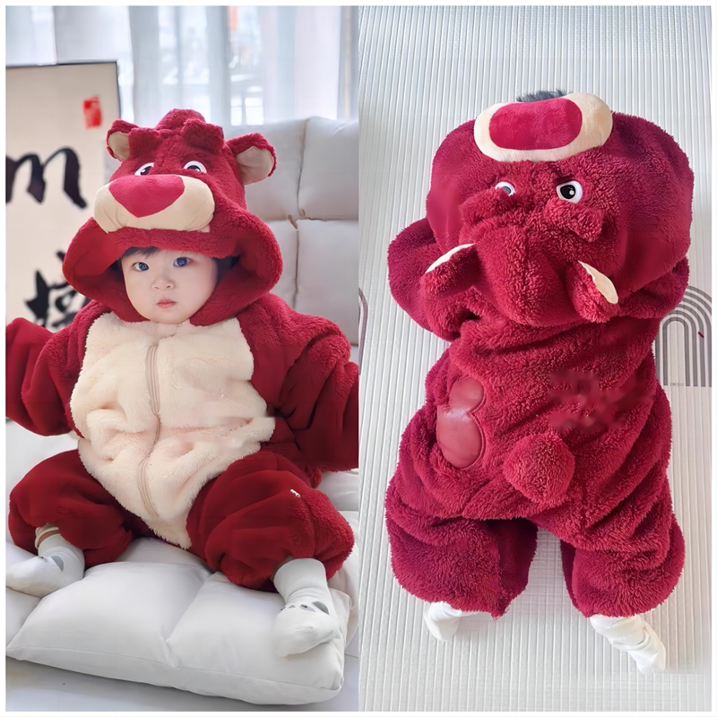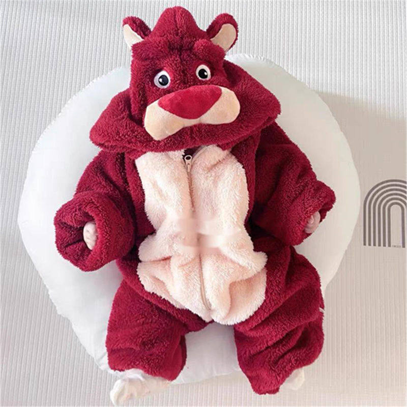 Детская зимняя утепленная одежда для мальчика, милая клубника для выхода на улицу, увеличенная толщина