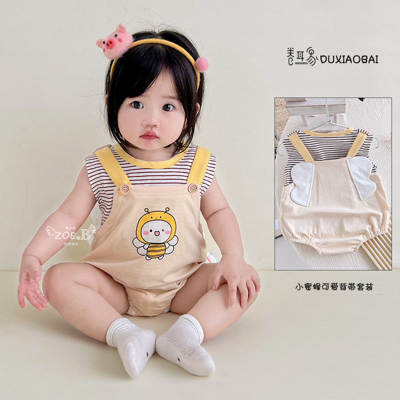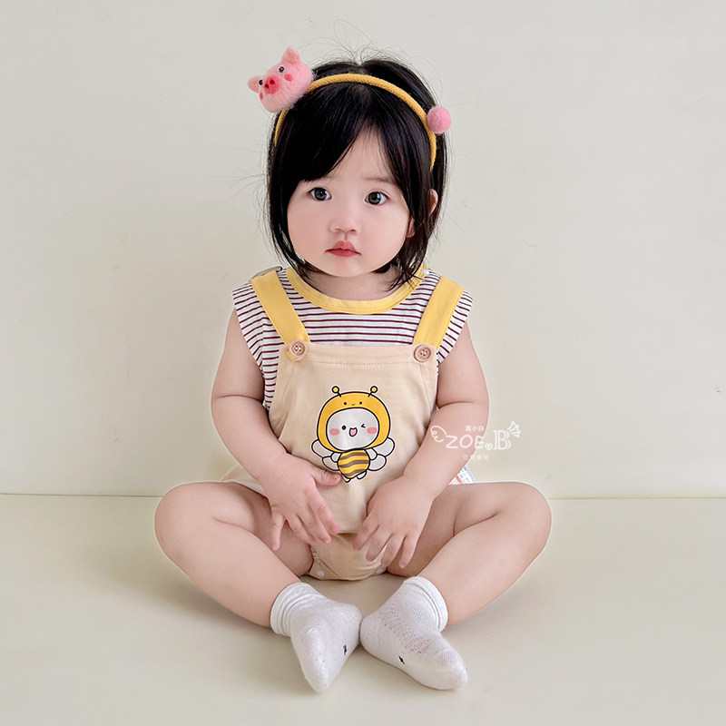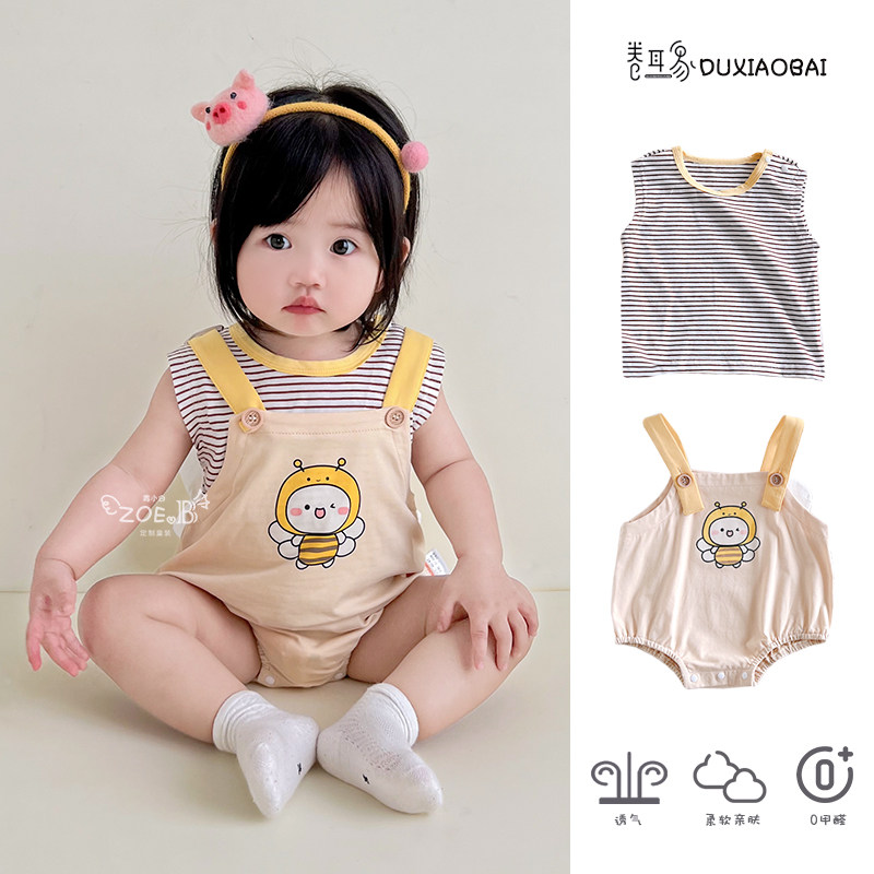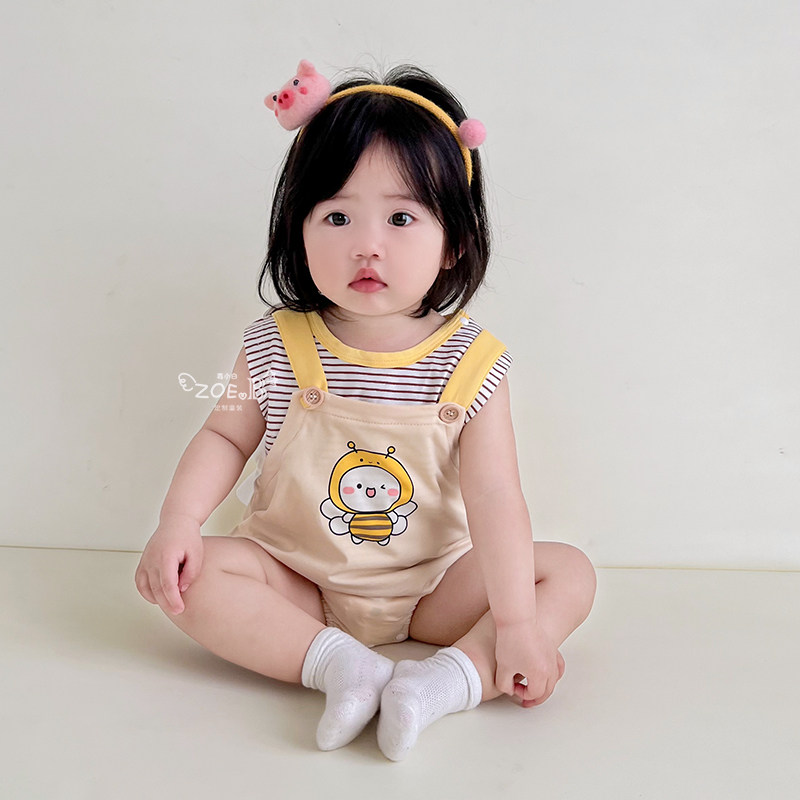 Детская летняя одежда для новорожденных, детский мультяшный комбинезон, штаны для раннего возраста, летний тонкий комплект