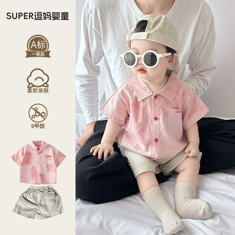 Детский летний тонкий комплект, летняя летняя одежда, рубашка, шорты, в западном стиле, популярно в интернете