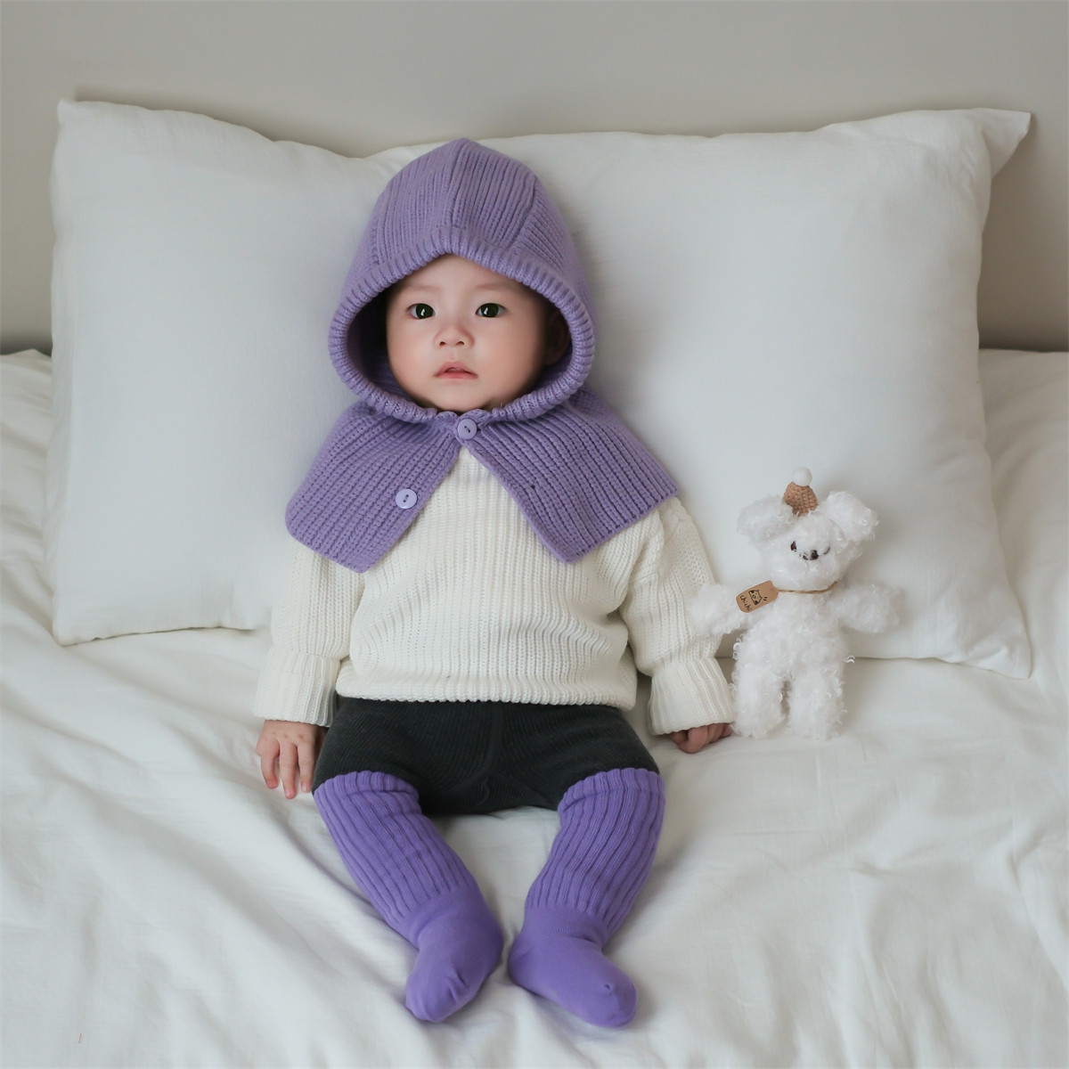 | Классификация цветов: | Белые колготки, сиреневые носки, Зеленый свитер, шапка, белые колготки, носки, Шапка, белые морские колготки, носки, Кремовый топ, Темно -серый трусики, Сиреневые носки, 1-3 лет, Фиолетовая шляпа |
