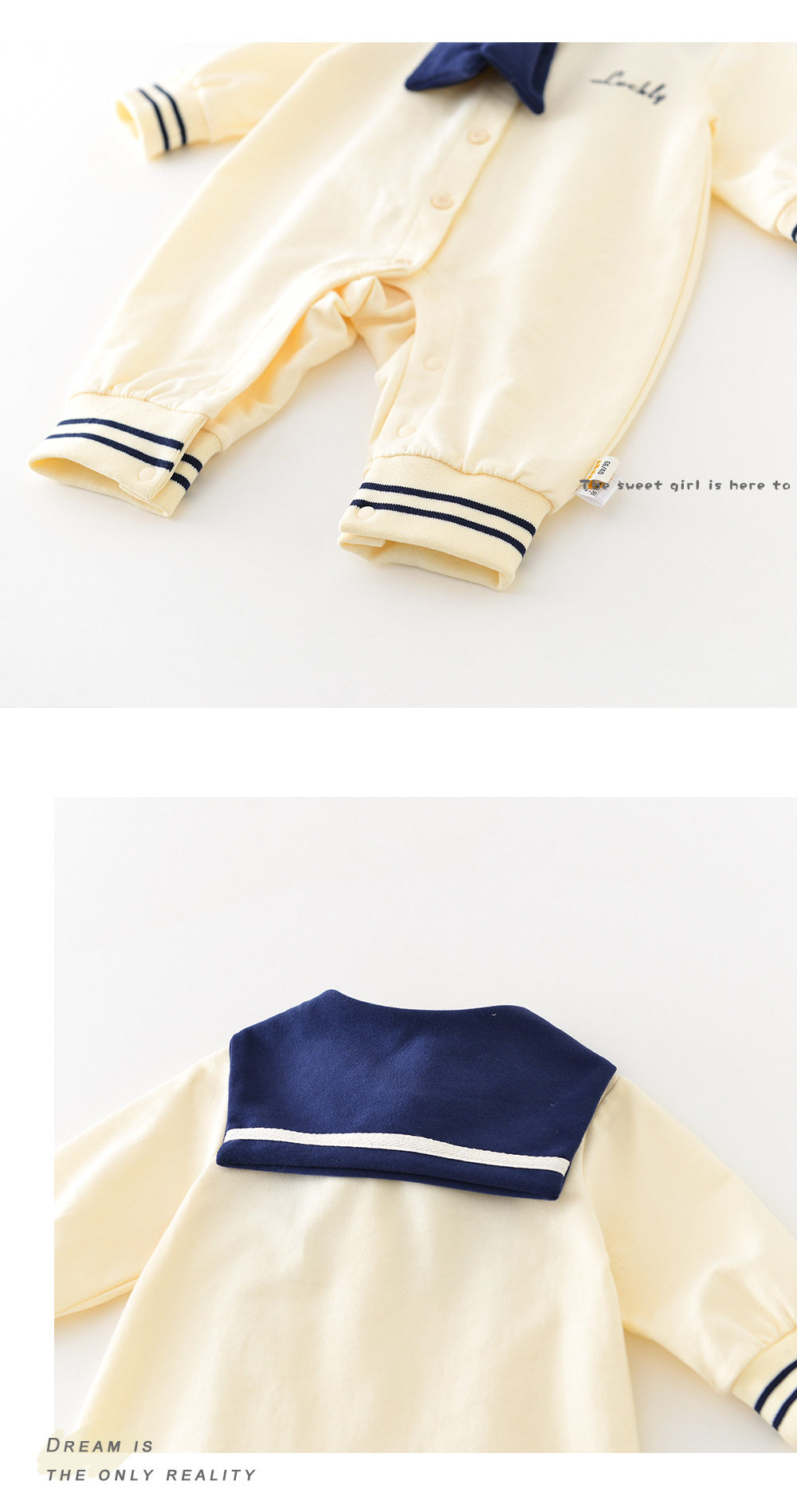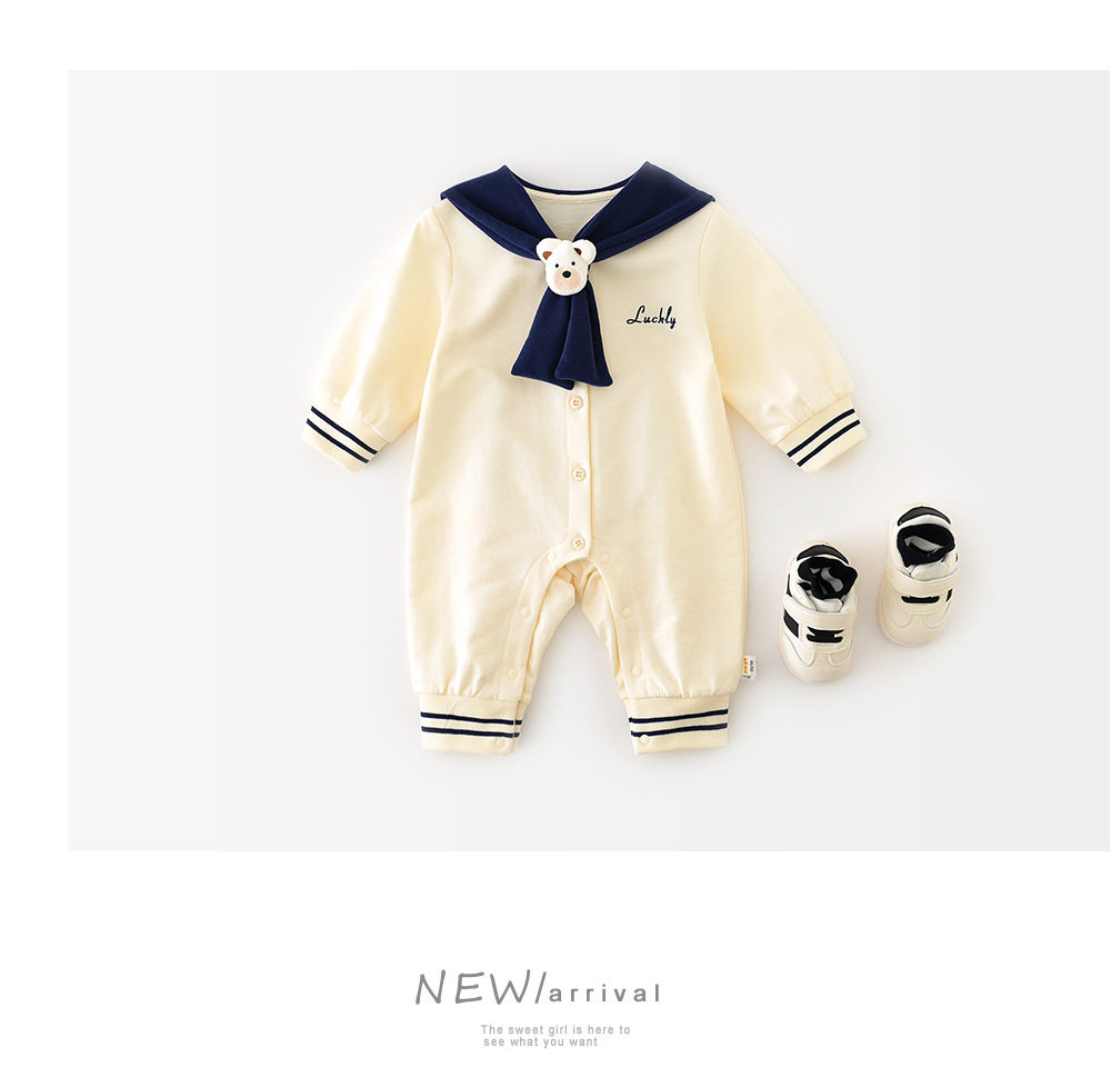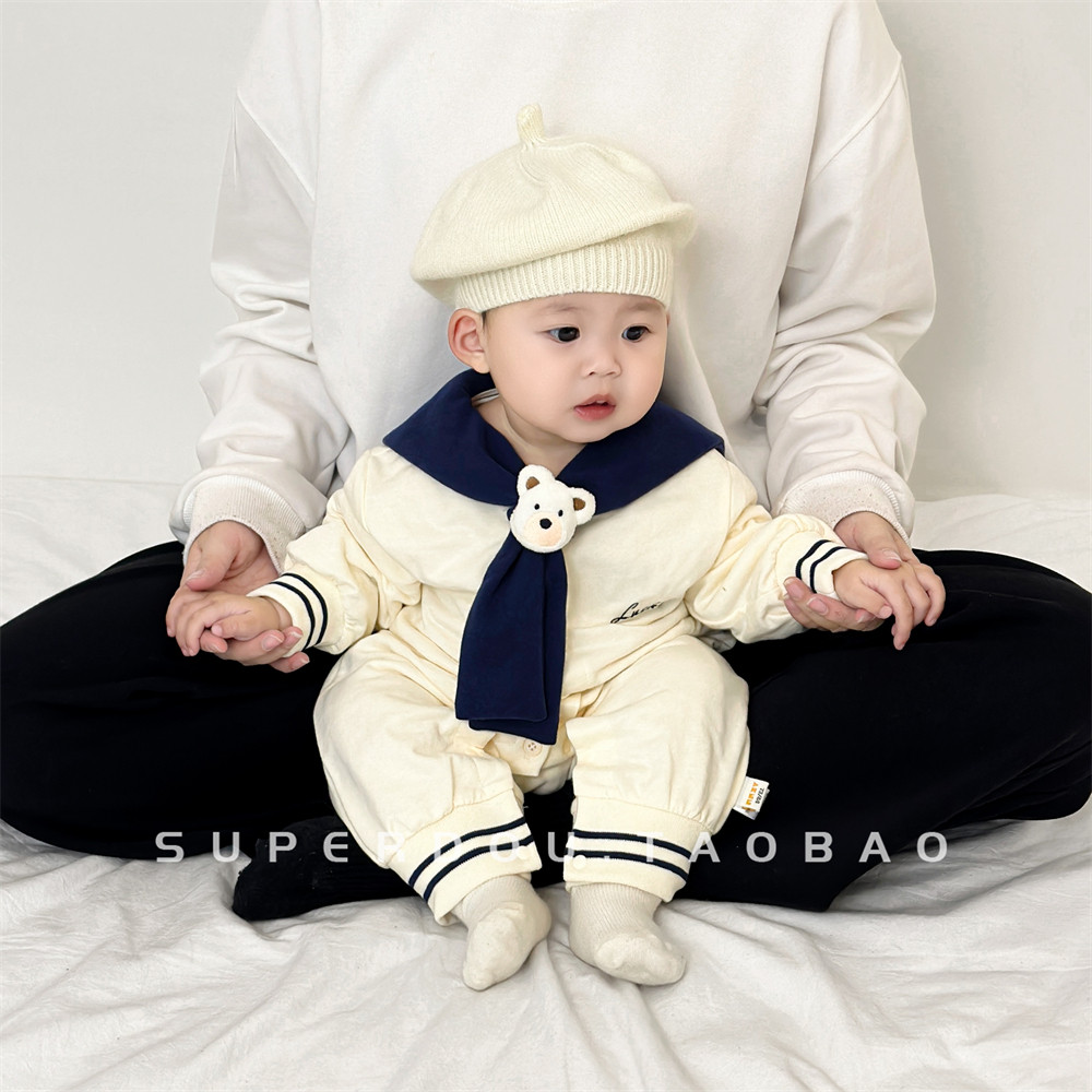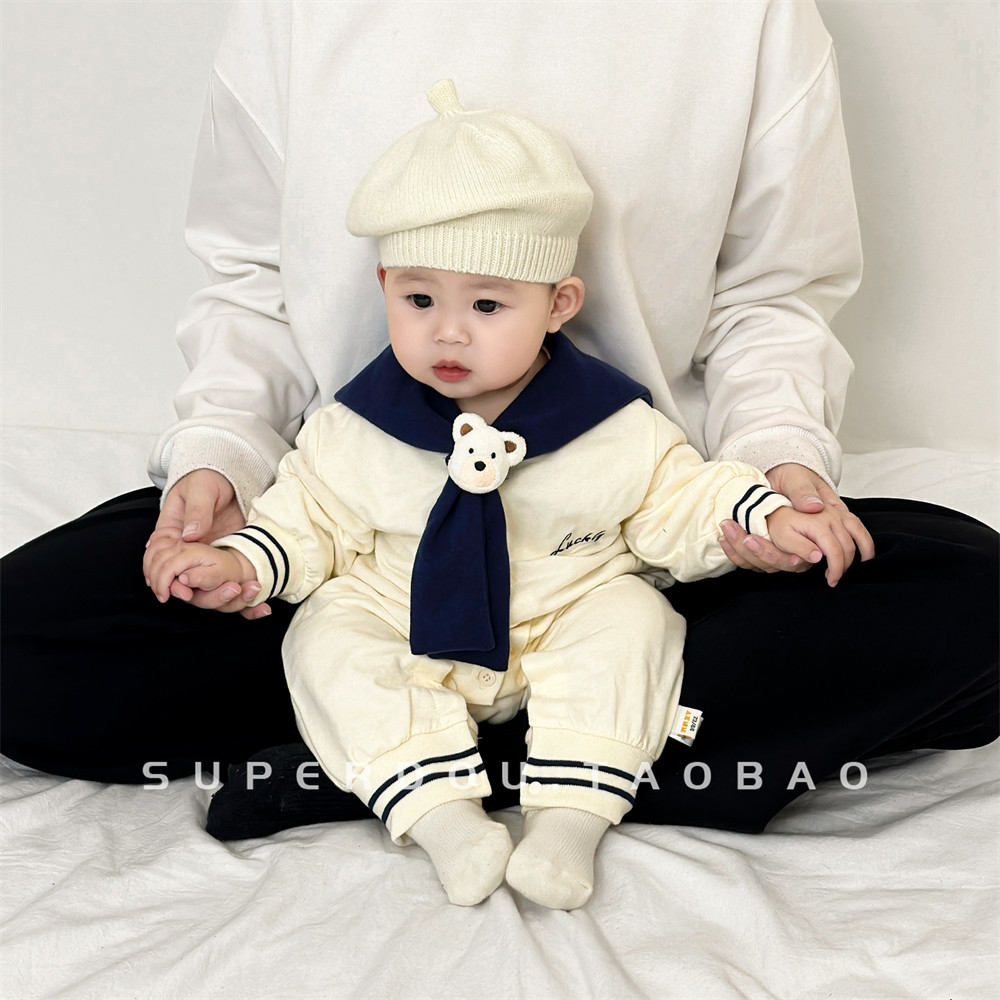 OneSie Baby Spring и осень милая детская одежда корейская младенческая младенческая морская вырез на сотне дней