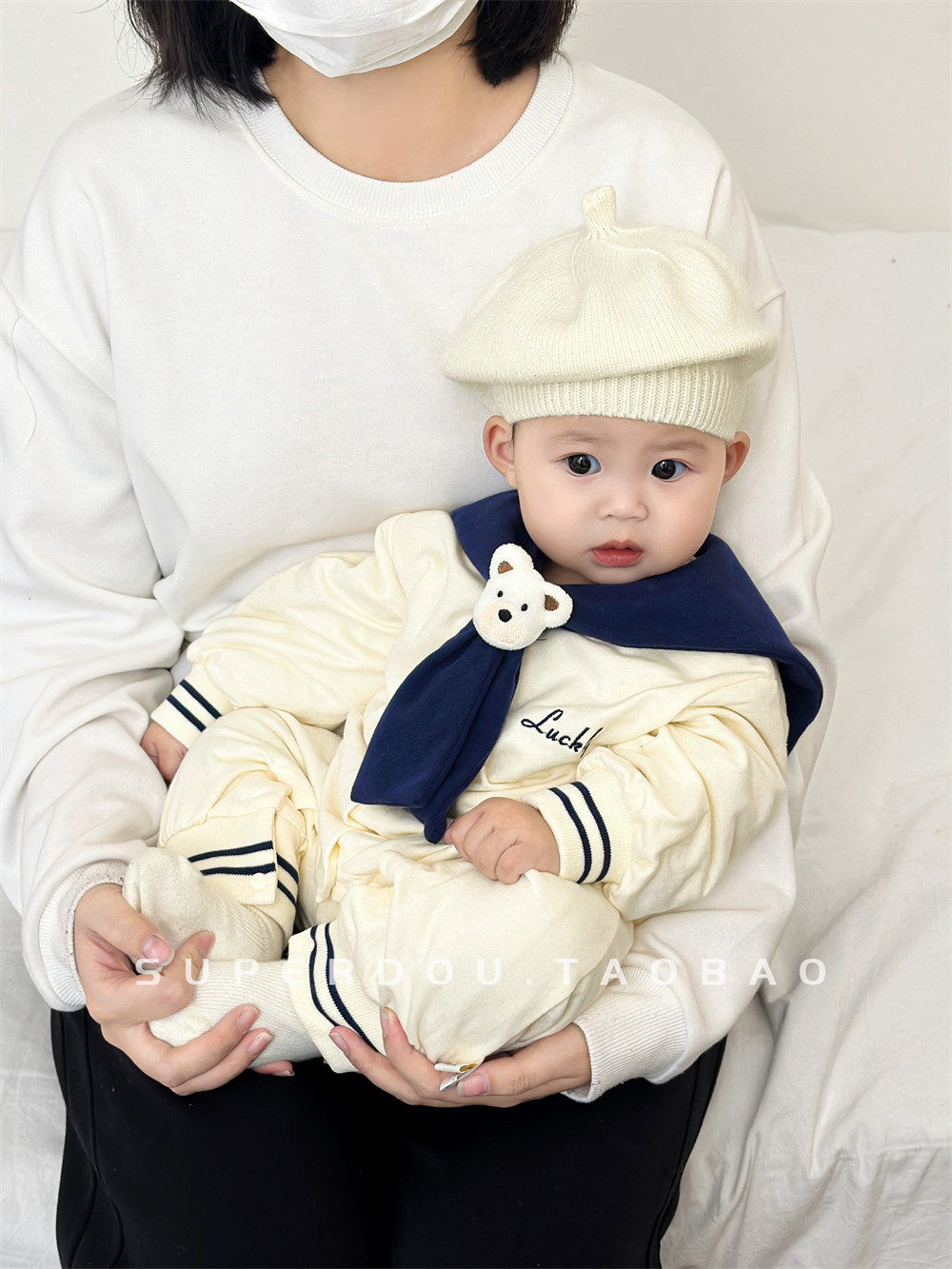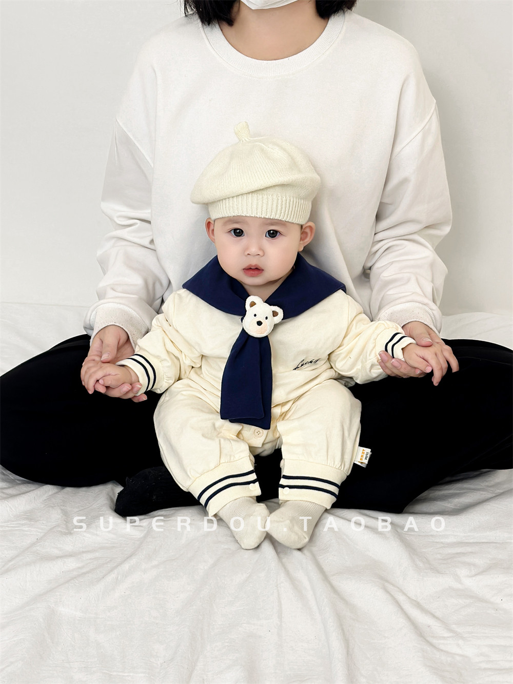 | Цвет: | Темно-синий комбинезон с воротником «медведь», Белый берет |