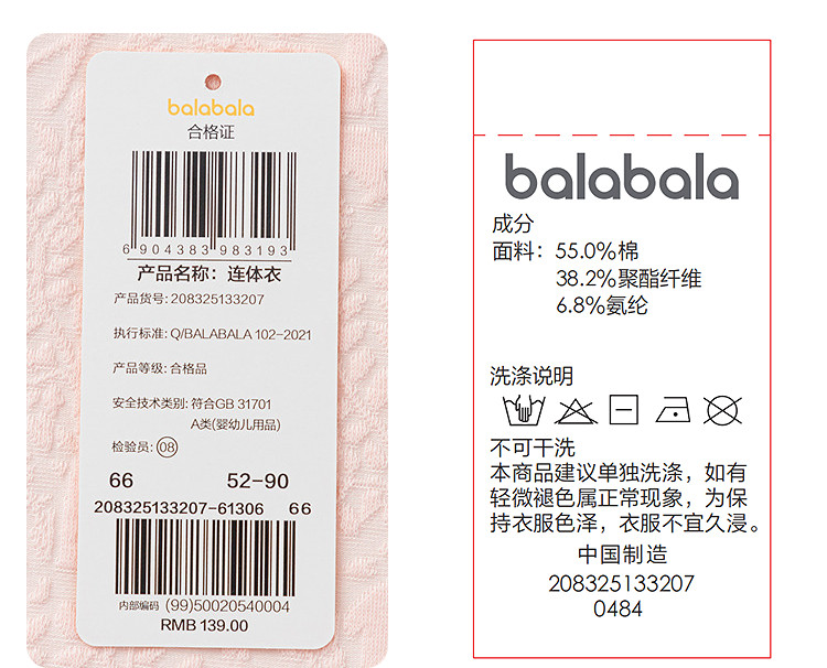 巴拉巴拉 Комбинезон для малышей balaOne, детский комбинезон для ползания Hayi 2025, новый стиль, приятный для кожи, удобный и элегантный