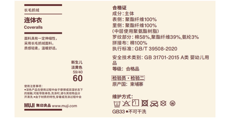 MUJI плюшевый флисовый комбинезон для новорожденных, детская одежда, новинка 25 осени и зимы