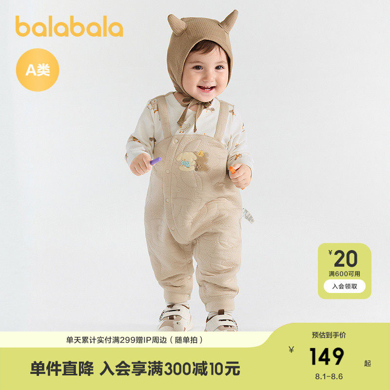 [Тот же стиль в торговых центрах] Детский комбинезон Balabala, детский костюм для ползания, новинка 2025 года, милые поддельные две штуки