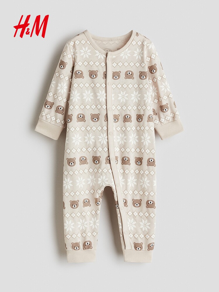 Детская одежда HM, комбинезон для маленьких мальчиков и девочек, новинка осени 2025, цельная пижама в западном стиле с круглым вырезом и принтом 1200792
