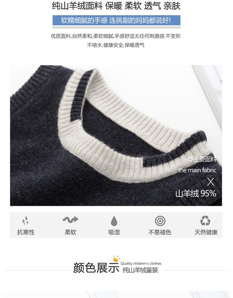 Демисезонный детский кашемировый жилет для мальчиков, свитер с круглым воротником, трикотажный кардиган
