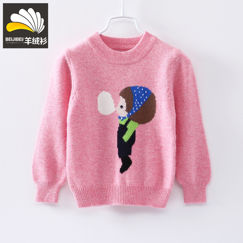 Розовый мультяшный детский кашемировый шерстяной зимний свитер с круглым воротником, 2-3-4-5-6-7-8-9 лет