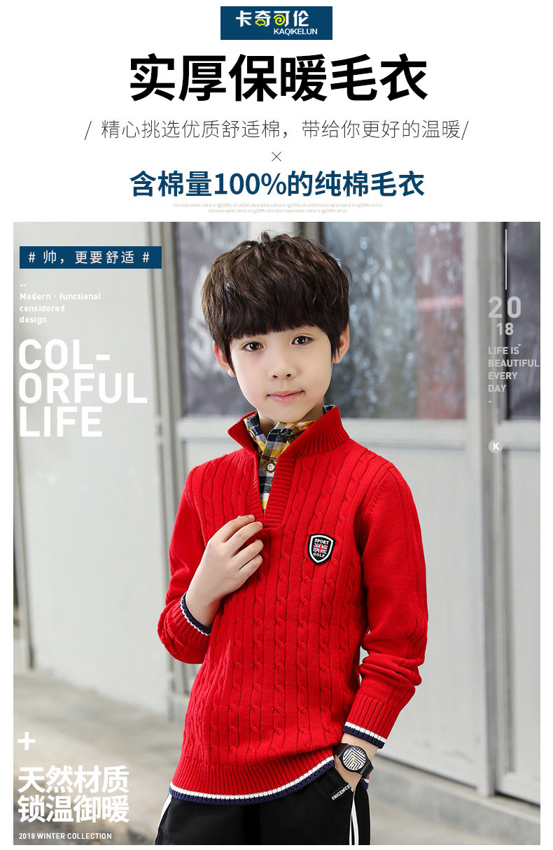 Демисезонный свитер для мальчиков, детское трикотажное утепленное красное цветное термобелье, подходит для подростков