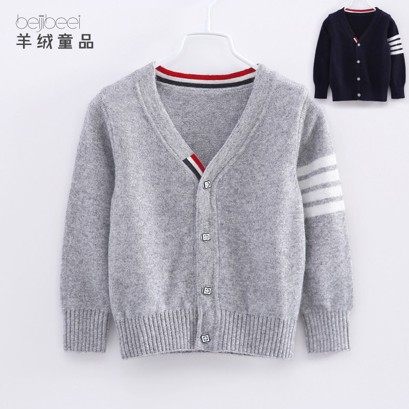 Демисезонный кашемировый детский кардиган для мальчиков, шерстяной трикотажный свитер, V-образный вырез, подходит для подростков