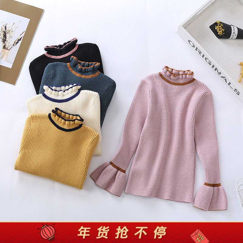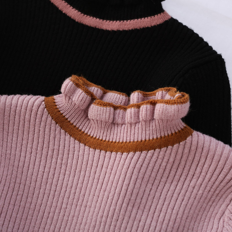 Черный трикотажный детский свитер, пуховик, высокий воротник, детская одежда, коллекция 2021