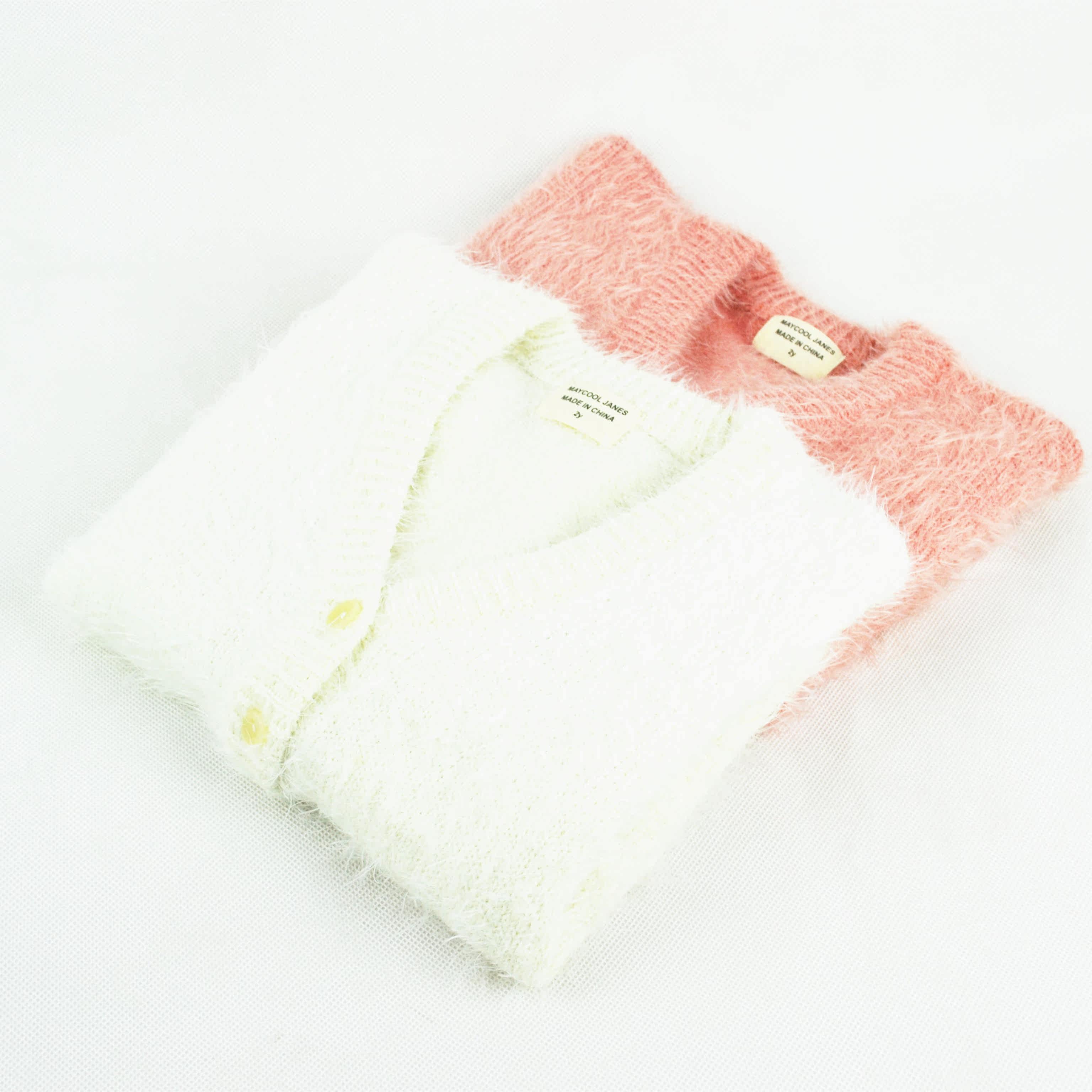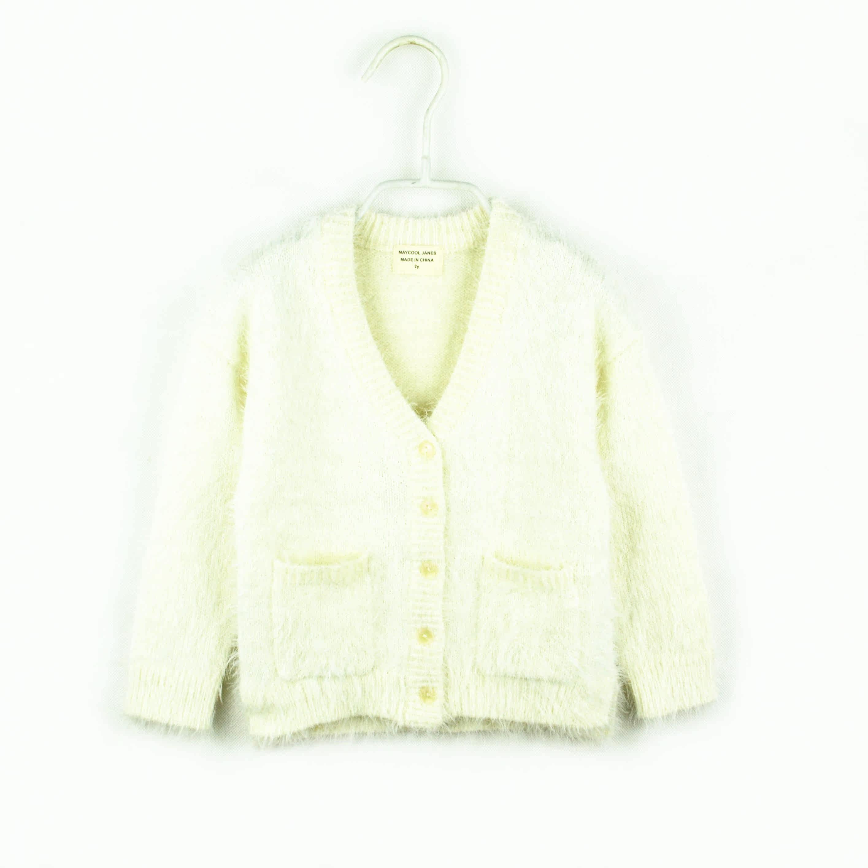 Осенний трикотажный лонгслив с пухом, детский кардиган, белый свитер, в корейском стиле