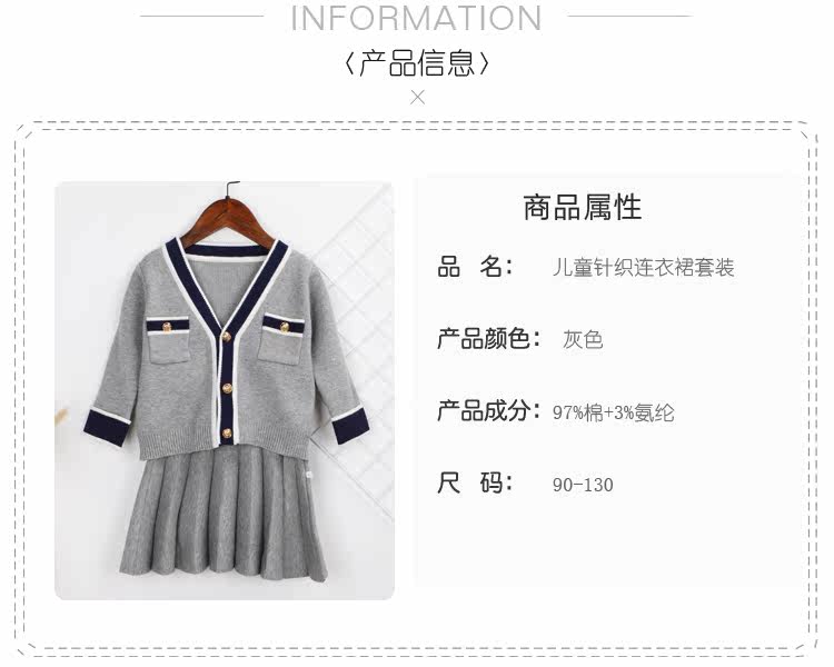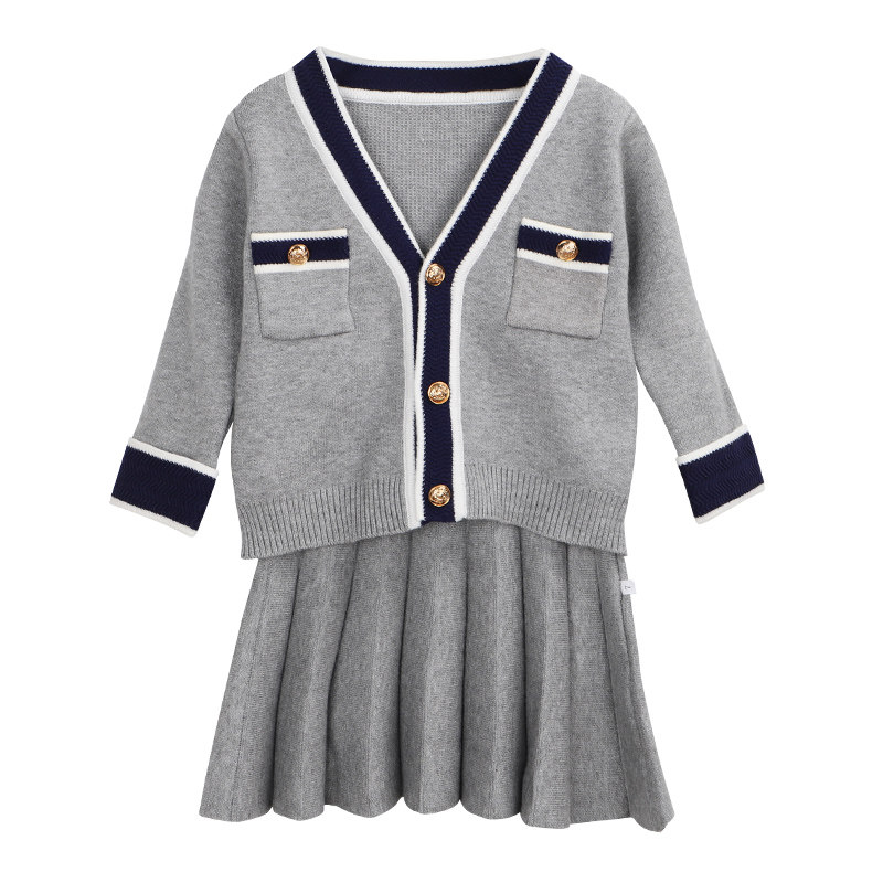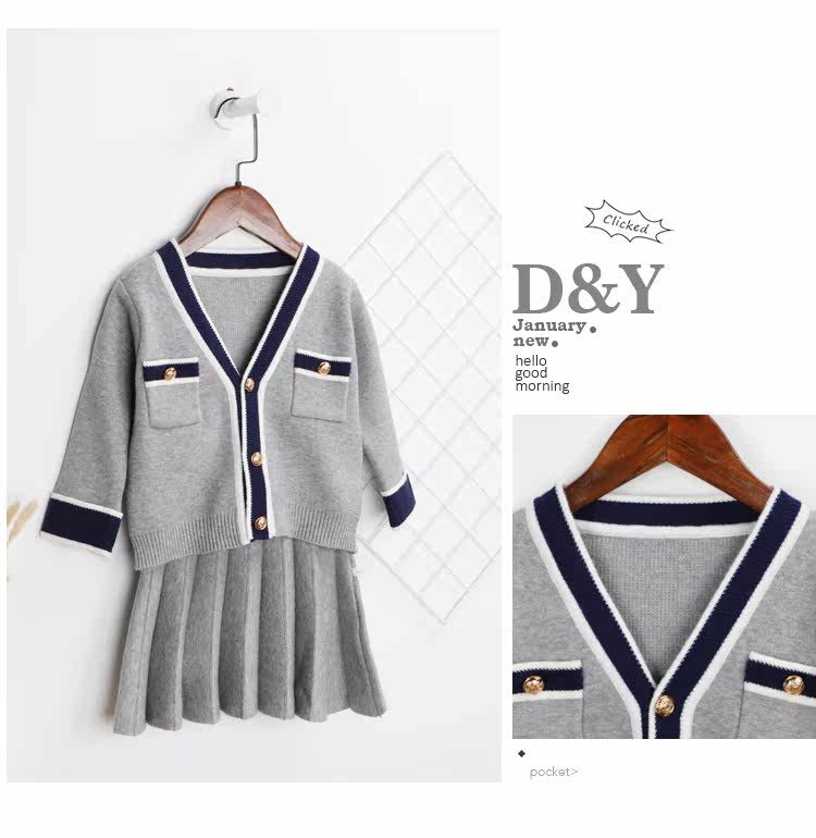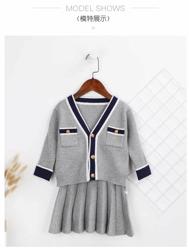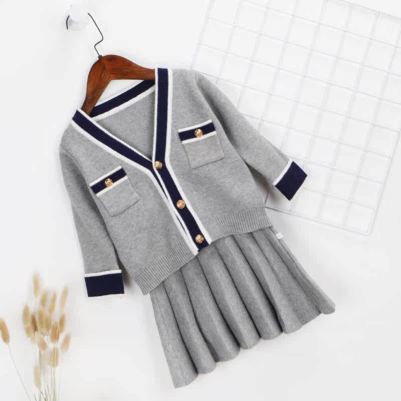 Весенний комплект, трикотажный свитер, юбка, детская одежда, 2019, тренд сезона, в корейском стиле, в западном стиле, в стиле Шанель