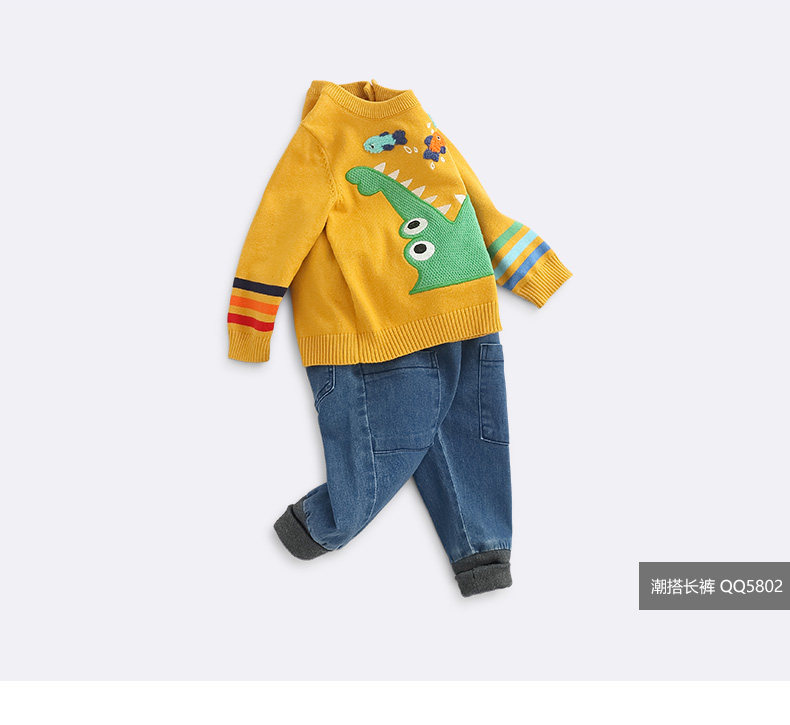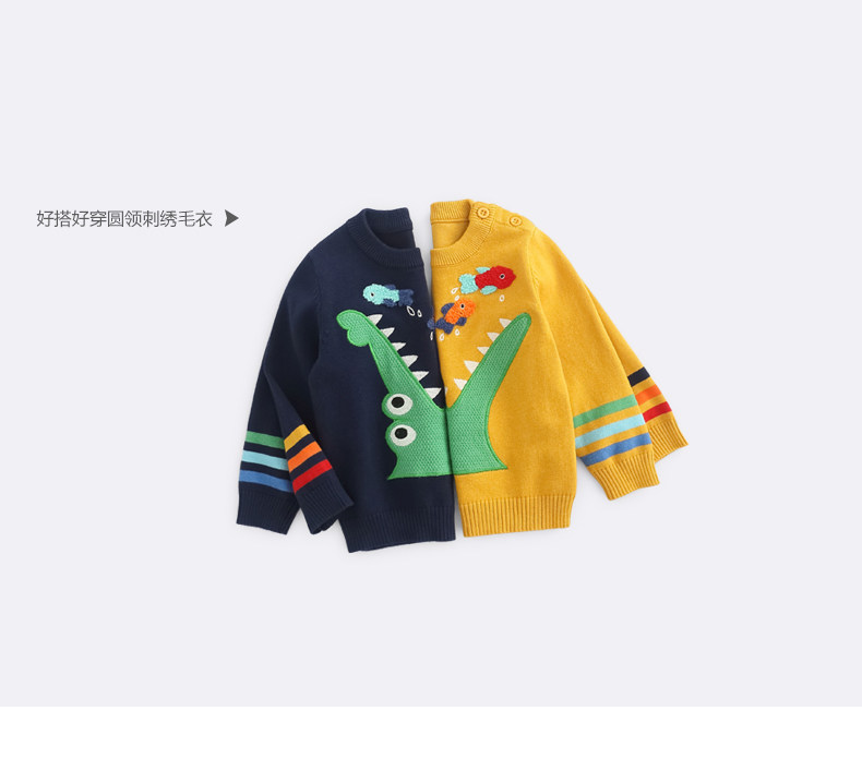 Детский трикотажный свитер для мальчиков, лонгслив с круглым воротником для выхода на улицу, осеннее термобелье, с вышивкой, детская одежда