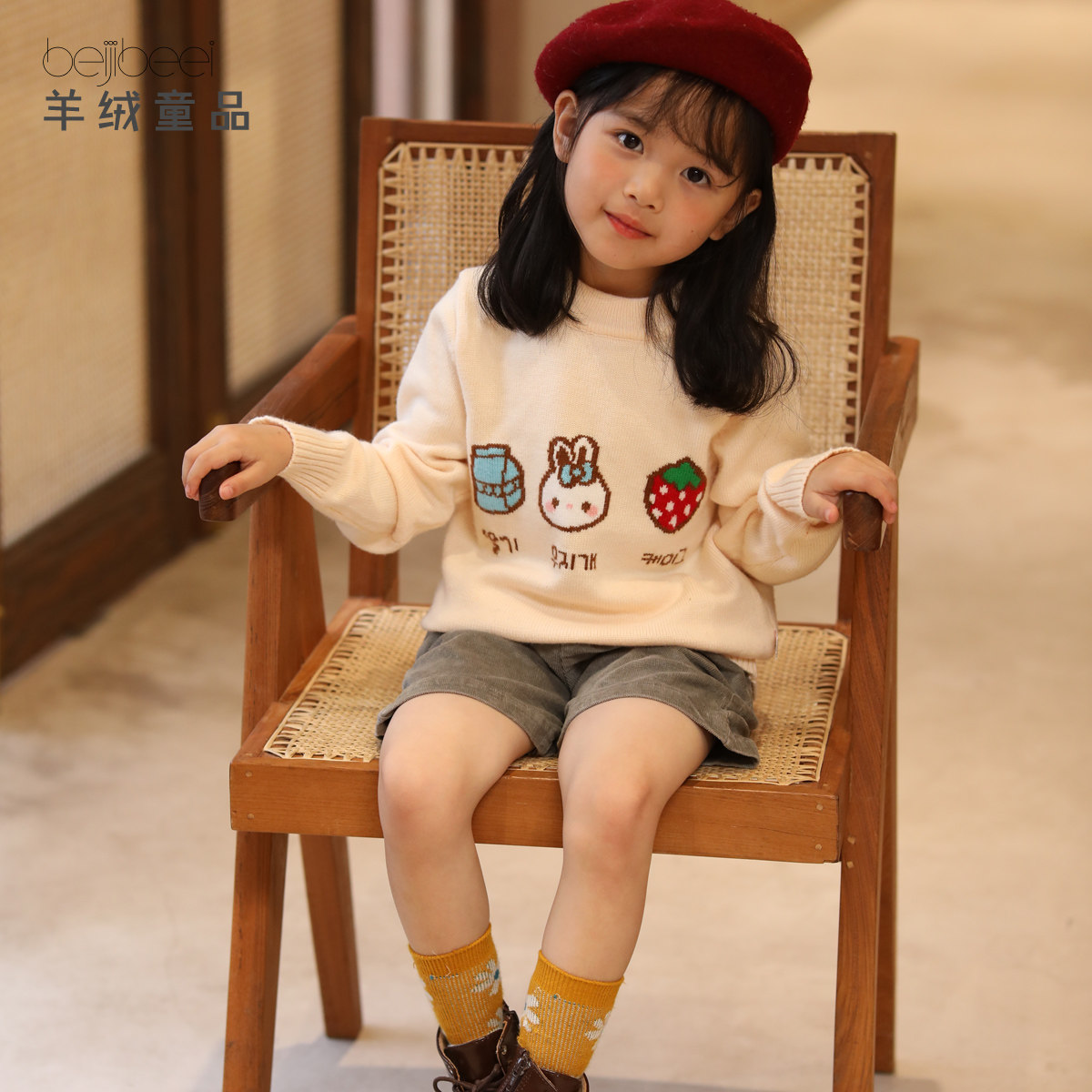Детский кашемировый шерстяной трикотажный мультяшный демисезонный свитер, в корейском стиле, увеличенная толщина, в западном стиле