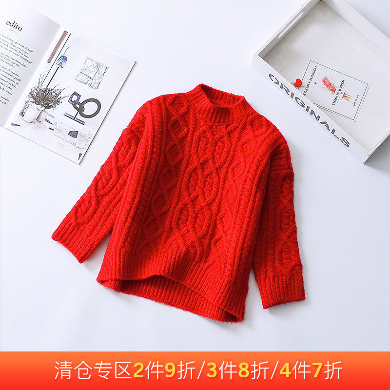 Детский красный трикотажный свитер, пуховик, в корейском стиле, детская одежда, 2022
