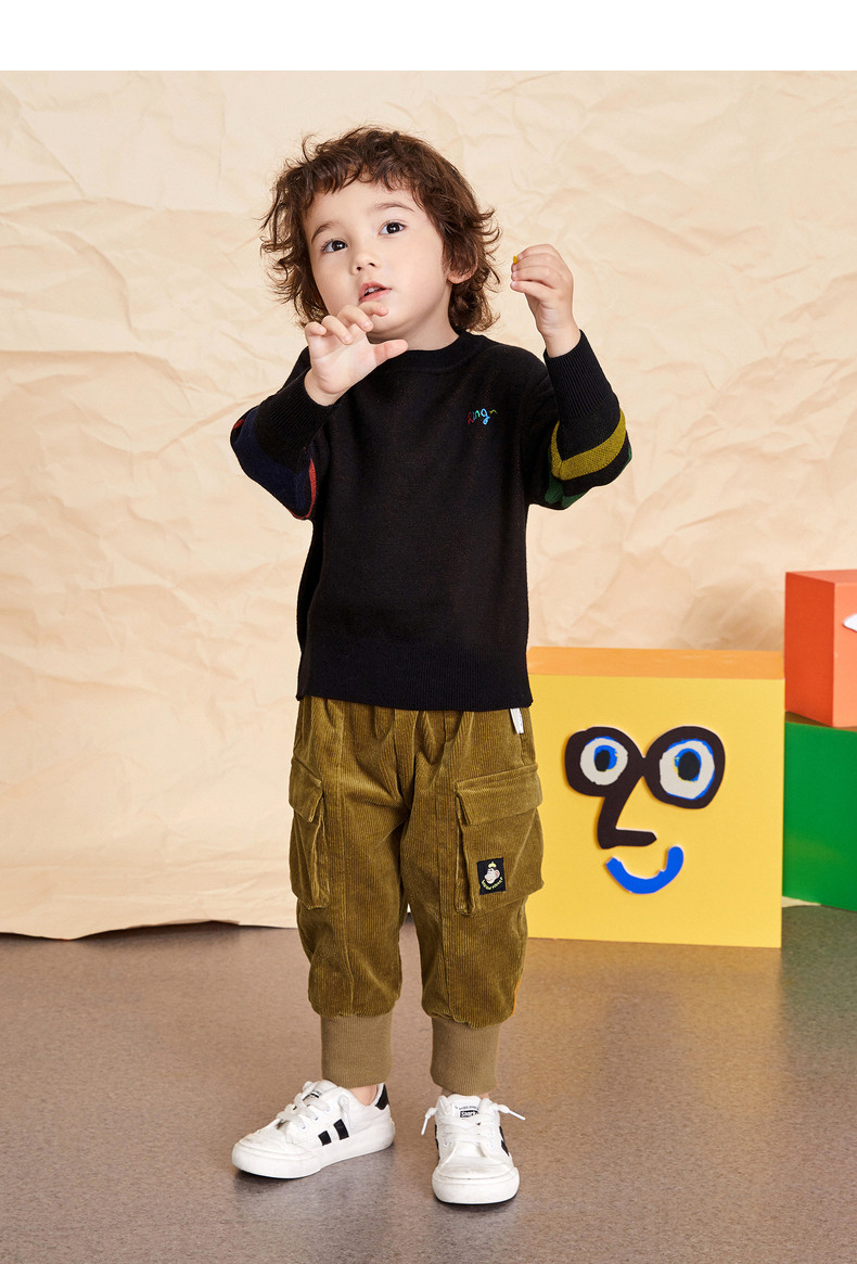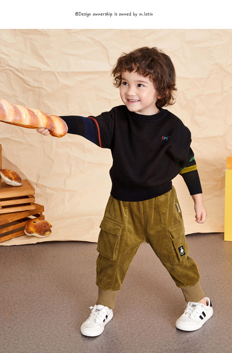 Свитер с круглым воротником, трикотажный пуховик, детская одежда, 2020, принт