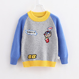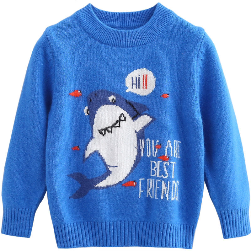 Детский свитер для мальчиков, кашемировая шерстяная детская мультяшная трикотажная утепленный лонгслив с круглым воротником
