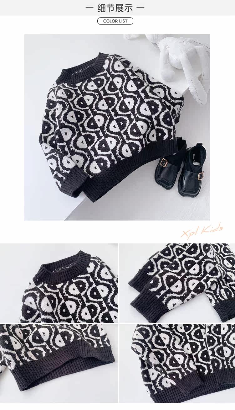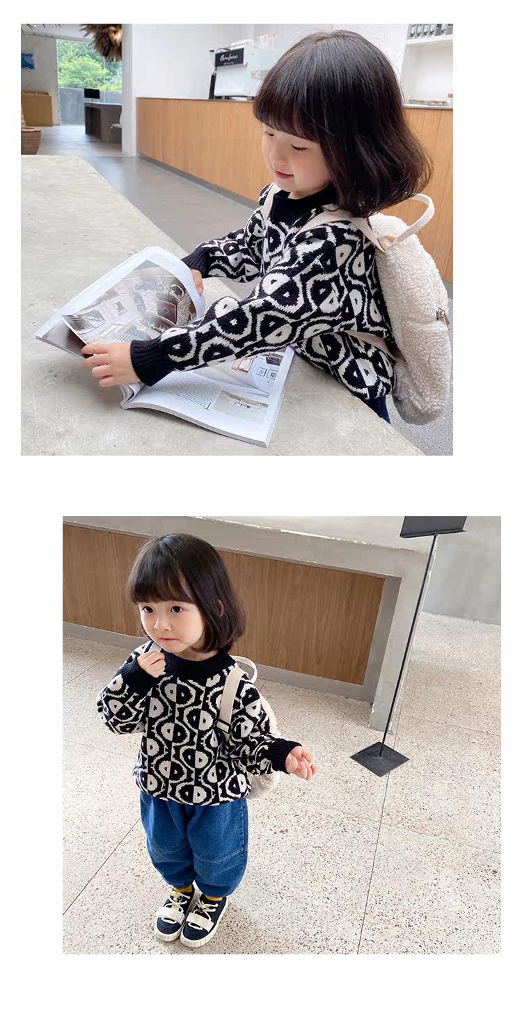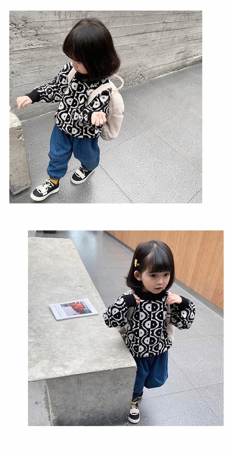 Трикотажный детский свитер, пуховик, детская одежда, свободный крой, в западном стиле, 2020