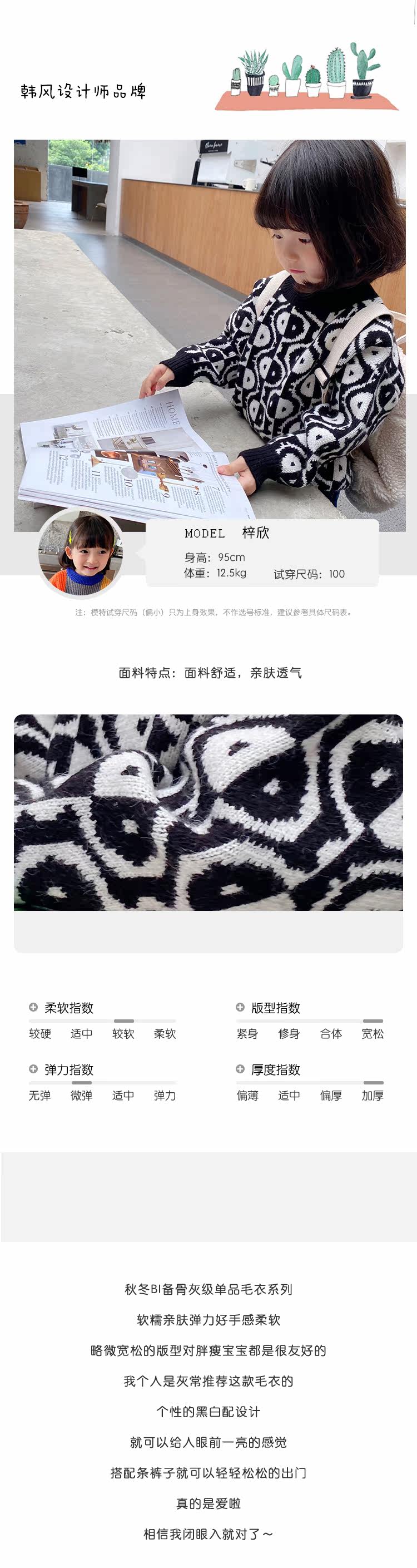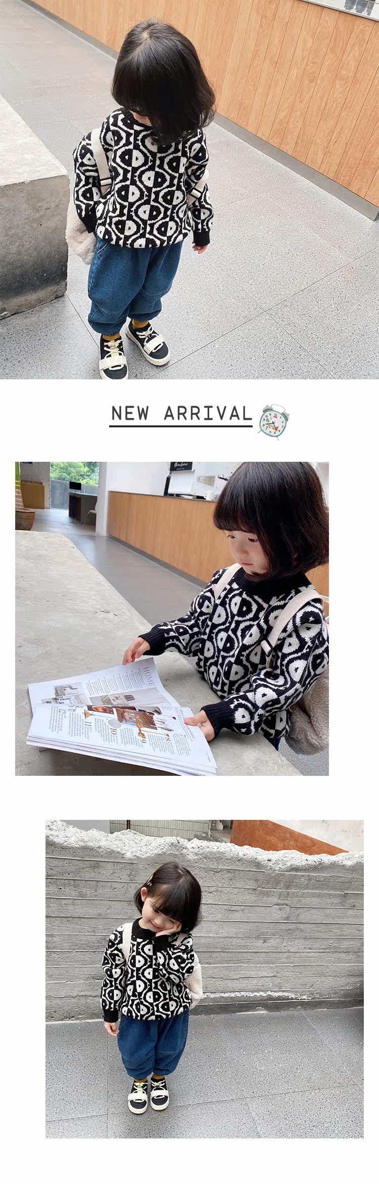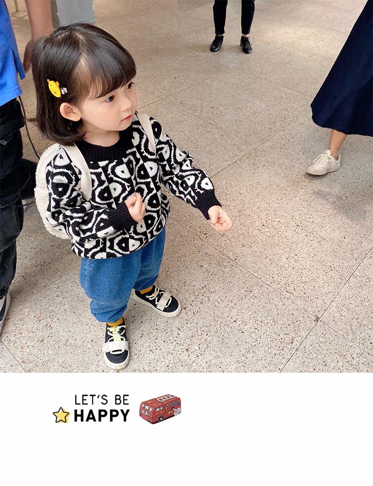 Трикотажный детский свитер, пуховик, детская одежда, свободный крой, в западном стиле, 2020