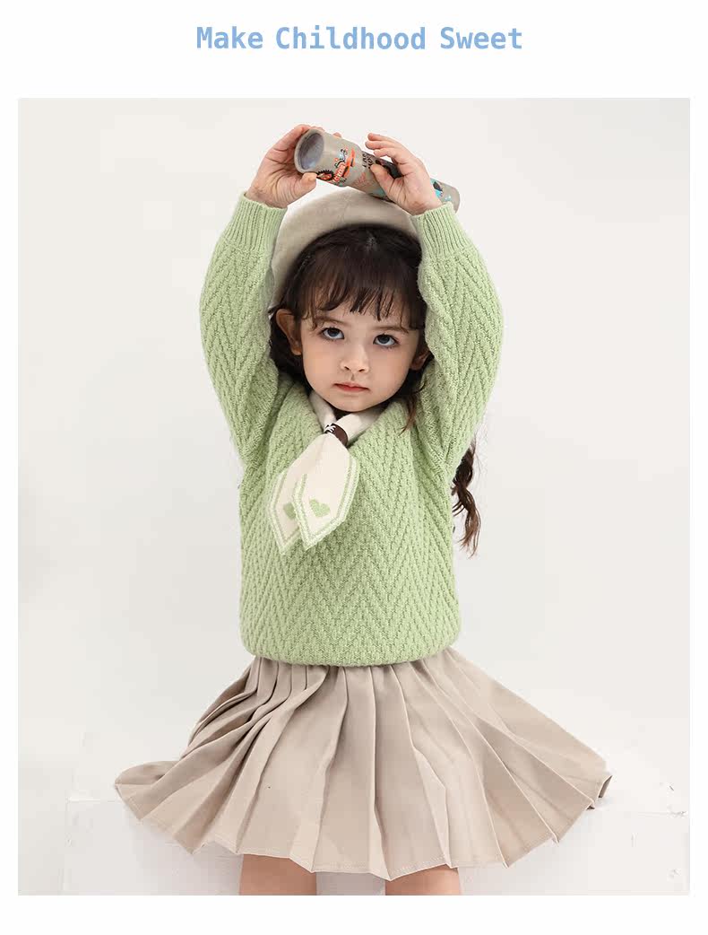 Зеленый детский весенний трикотажный базовый приятный телу свитер, в западном стиле