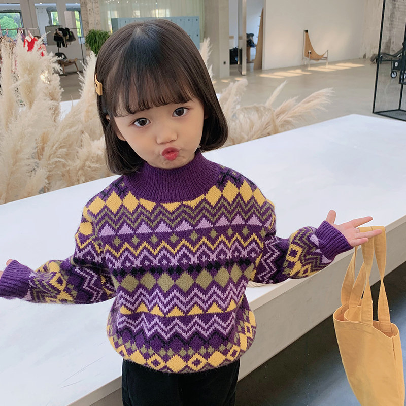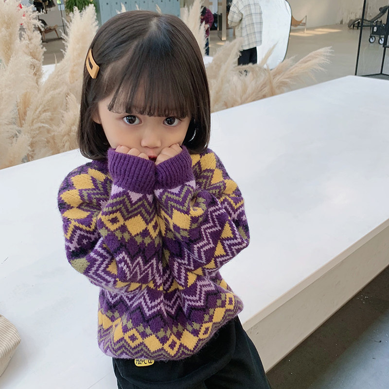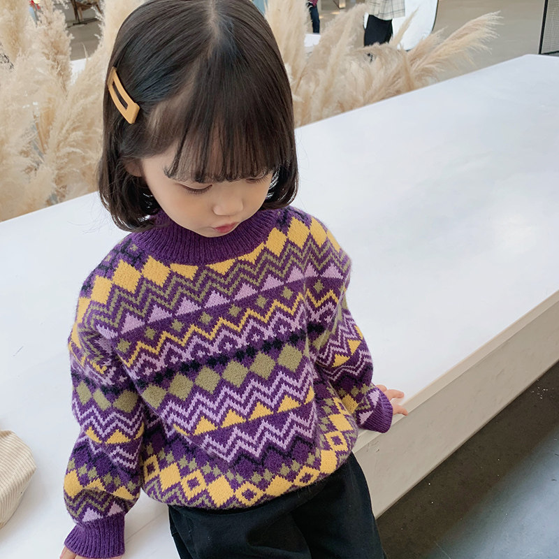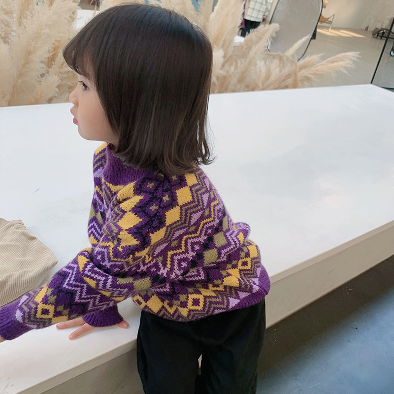 Детский ретро трикотажный свитер, пуховик, детская одежда, коллекция 2021