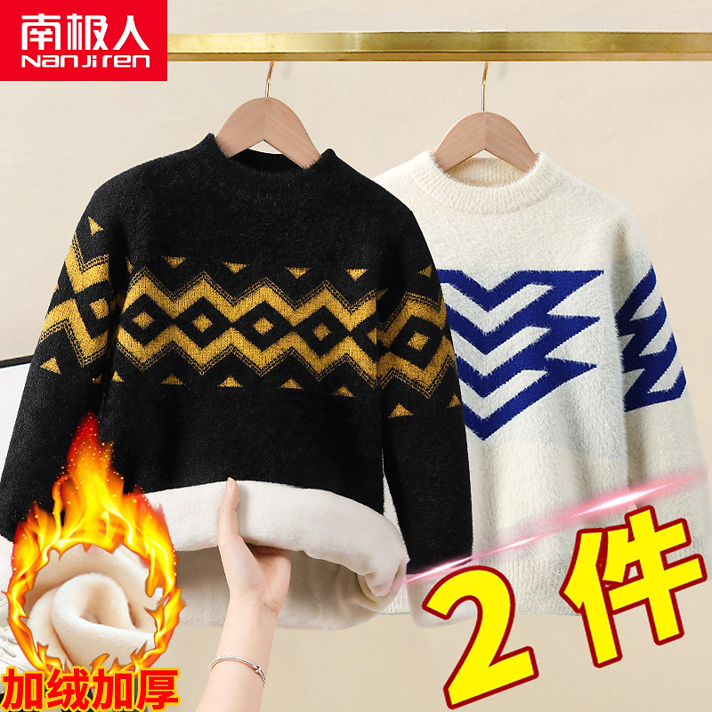 Детский демисезонный утепленный зимний бархатный свитер для мальчиков с круглым воротником, подходит для подростков, в западном стиле