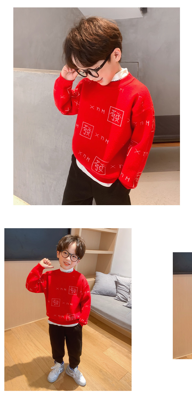 左西 Детский красный базовый приятный телу демисезонный свитер для мальчиков, в западном стиле, подходит для подростков, коллекция 2021